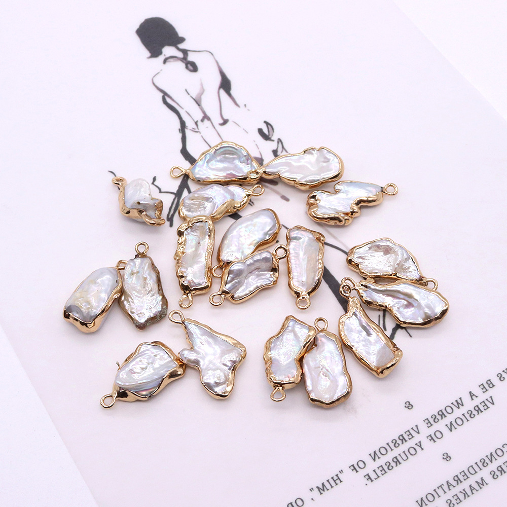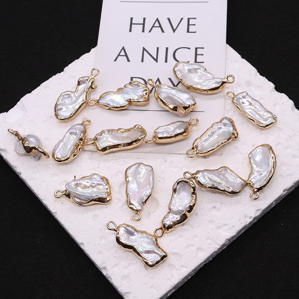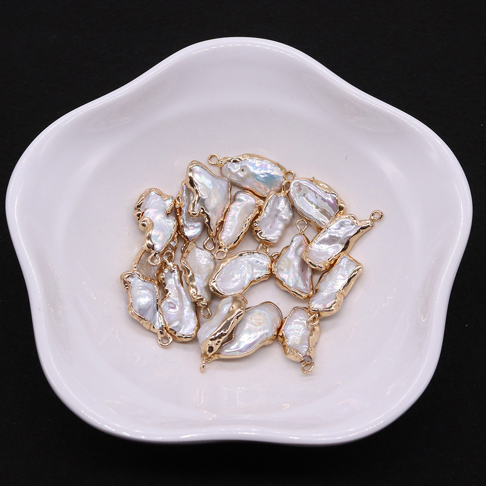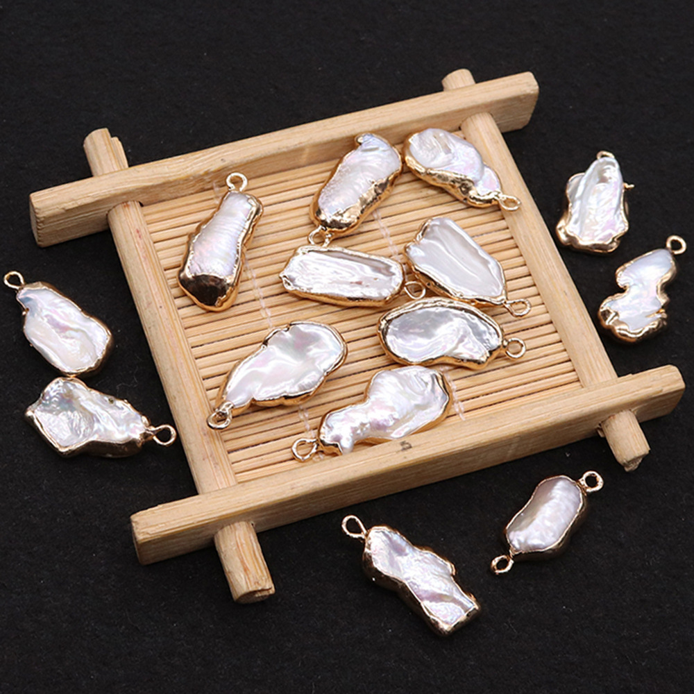 Süßwasser-Zuchtperlen Anhänger, Natürliche kultivierte Süßwasserperlen, Unregelmäßige, goldfarben plattiert, DIY, weiß, 11x23mm, verkauft von PC