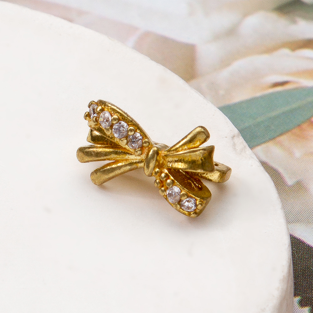 Strass Messing Anhänger, Schleife, plattiert, mit Strass, keine, 13.5x10.5x2mm, Bohrung:ca. 2mm, verkauft von PC