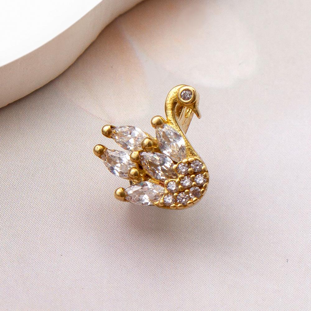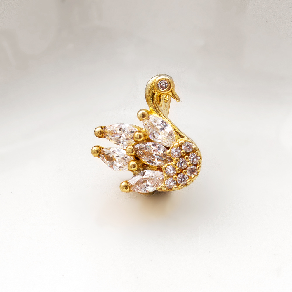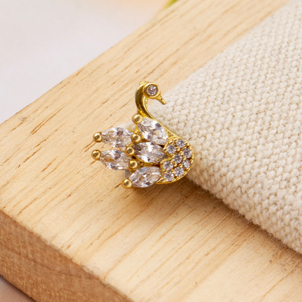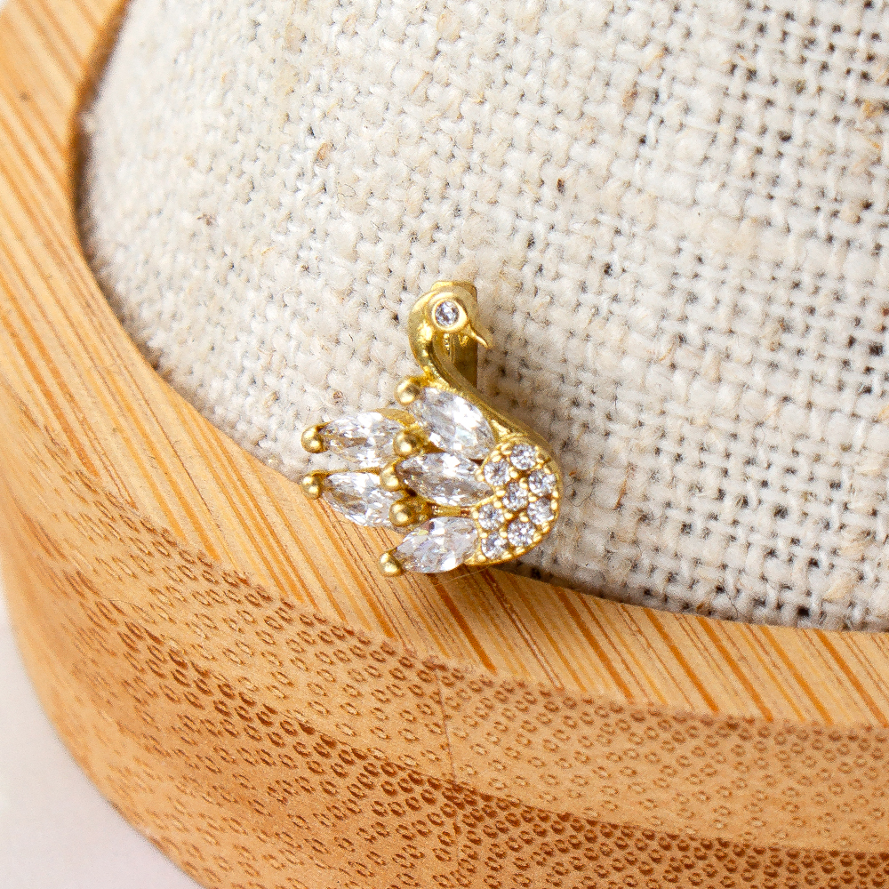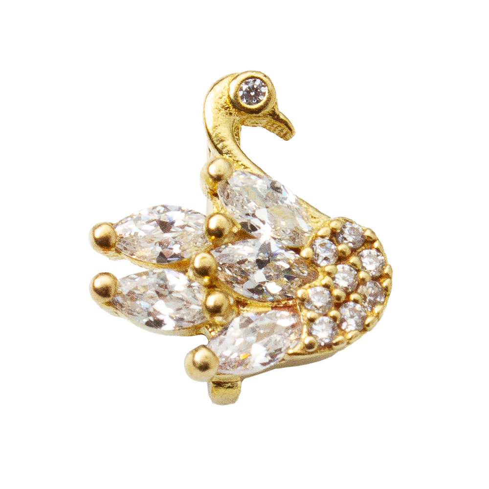 Strass Messing Anhänger, Schwan, plattiert, DIY & mit Strass & Doppelloch, goldfarben, 10.3x5.85x10.85mm, verkauft von PC
