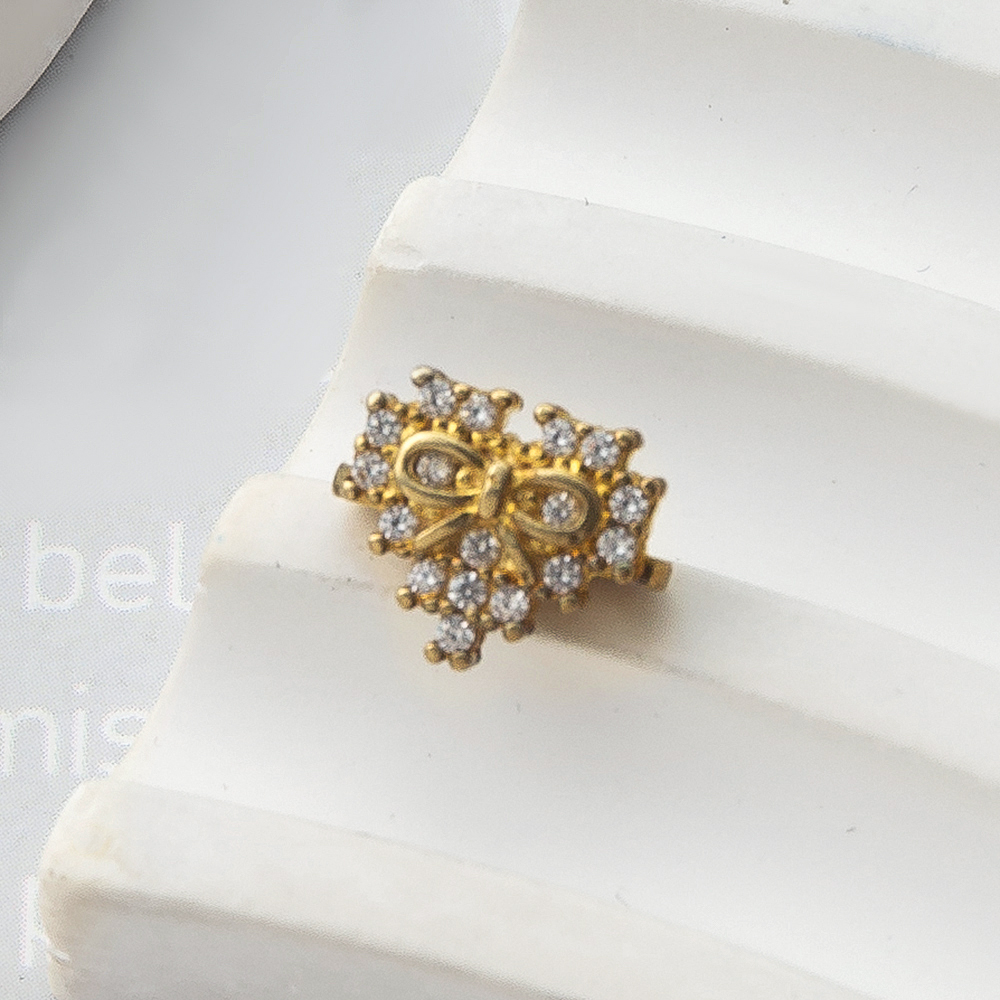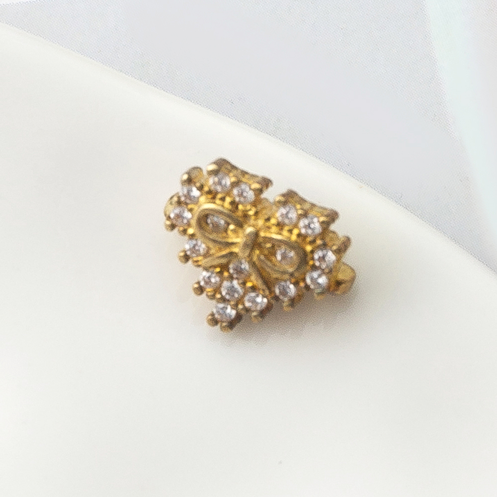 Strass Messing Anhänger, Schleife, plattiert, mit Strass, keine, 13.5x10.5x2mm, Bohrung:ca. 2mm, verkauft von PC