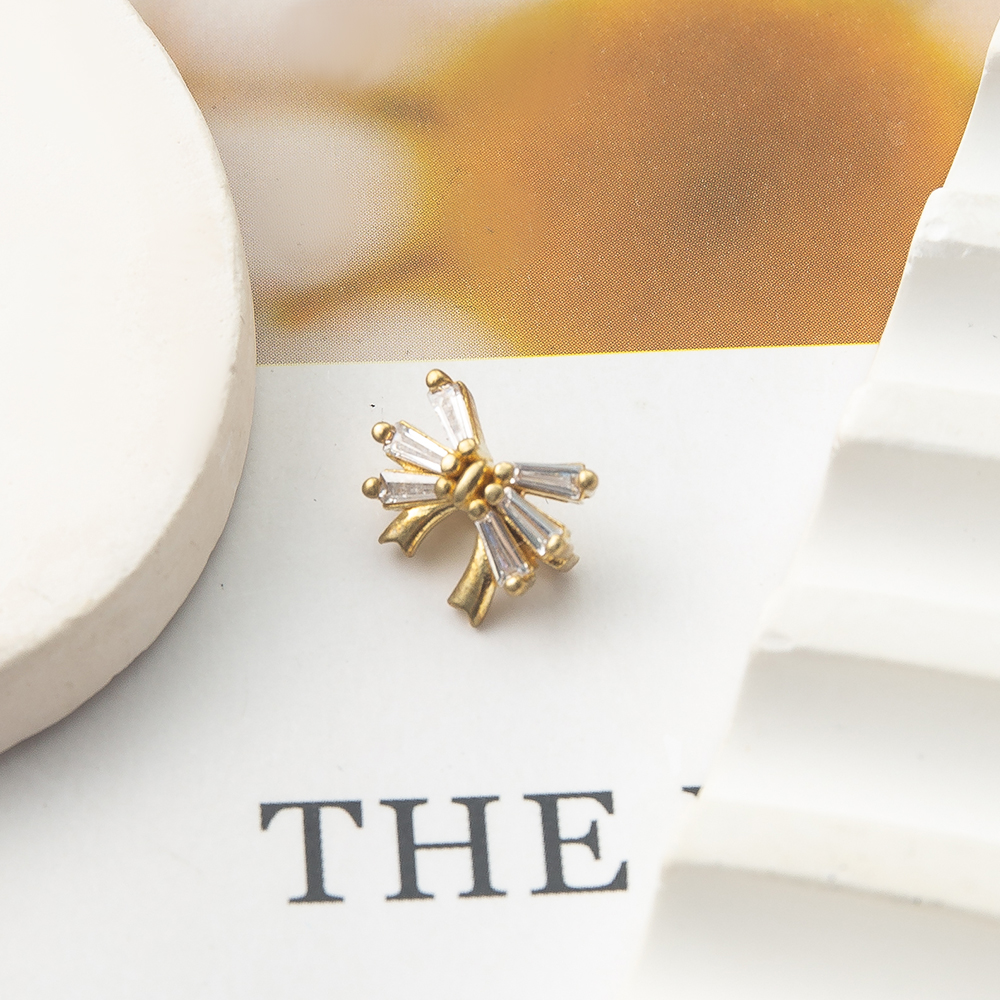 Strass Messing Anhänger, Schleife, plattiert, mit Strass, keine, 13.5x10.5x2mm, Bohrung:ca. 2mm, verkauft von PC