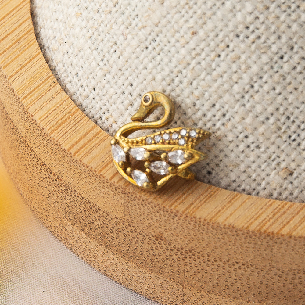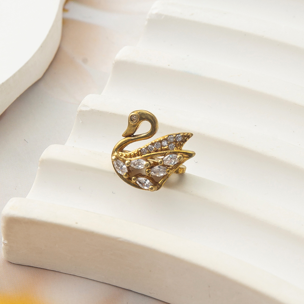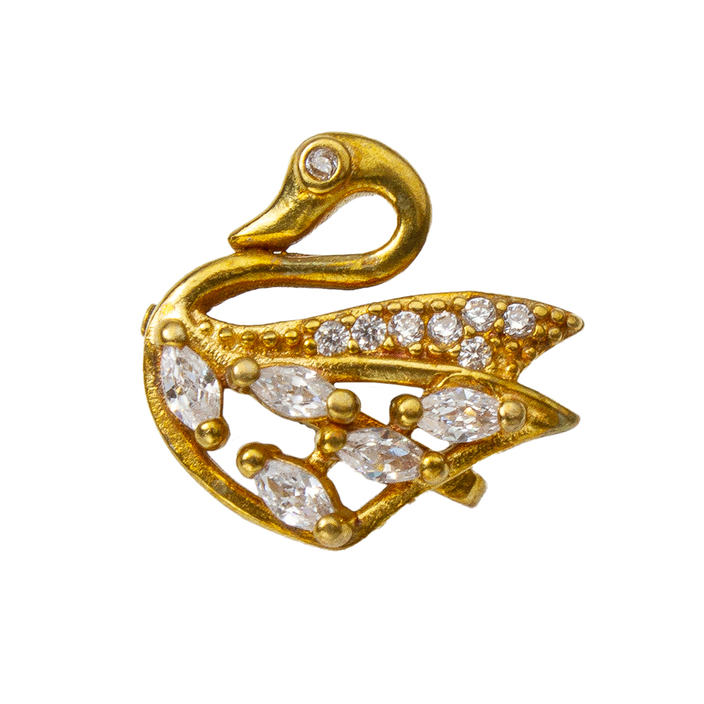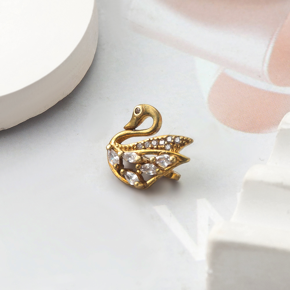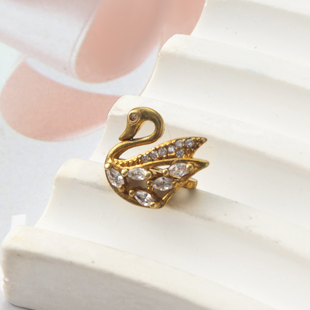 Strass Messing Anhänger, Schwan, plattiert, DIY & mit Strass & Doppelloch, goldfarben, 12.6x6.4x11.37mm, Innendurchmesser:ca. 1.2mm, verkauft von PC