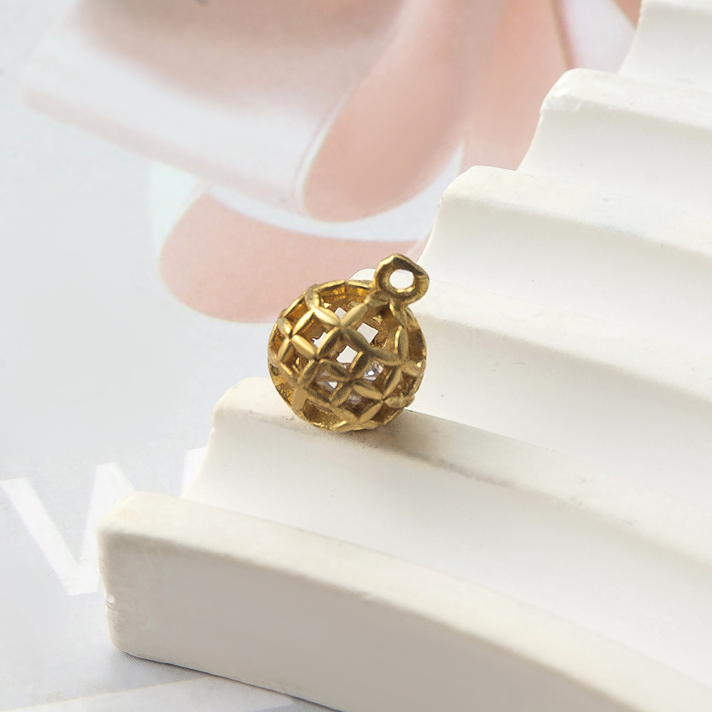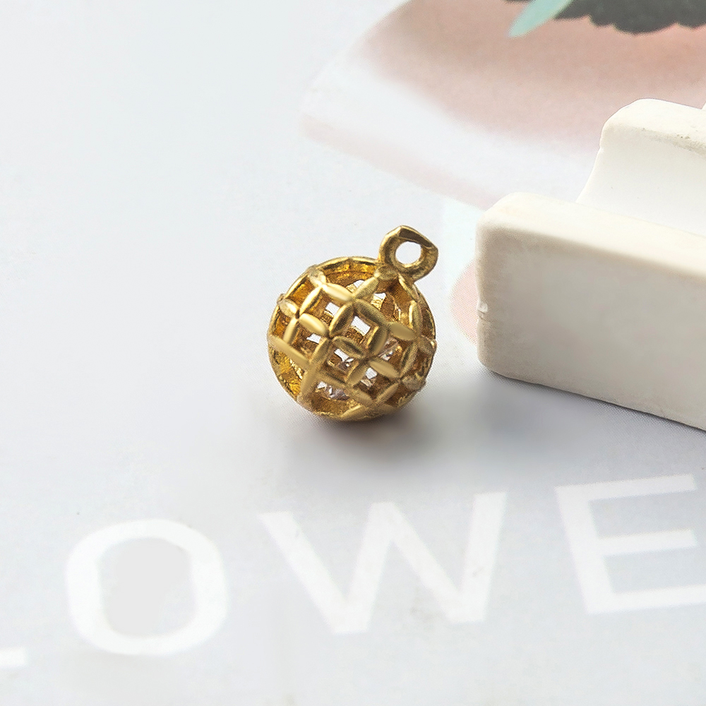 Strass Messing Anhänger, rund, plattiert, DIY & mit Strass, goldfarben, 9.5x9.3x11.7mm, verkauft von PC