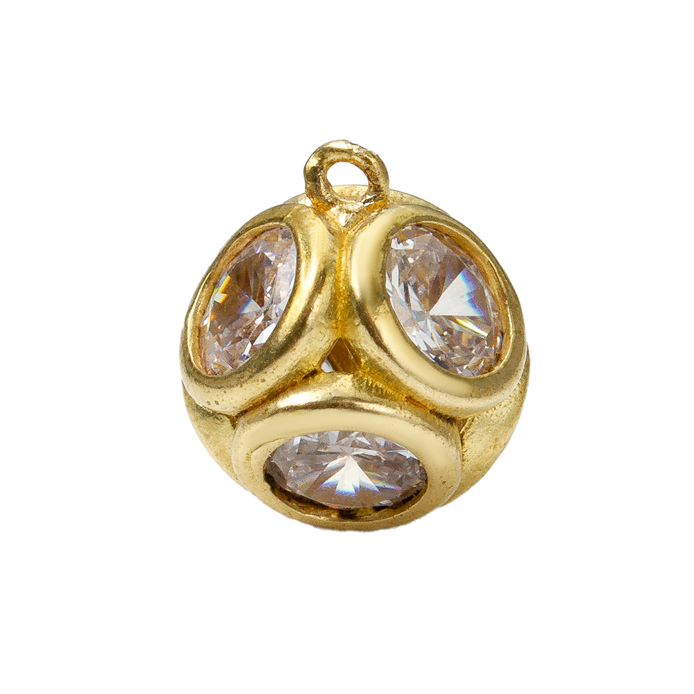 Strass Messing Anhänger, rund, plattiert, DIY & mit Strass, goldfarben, 10.8x10.6x12.1mm, verkauft von PC