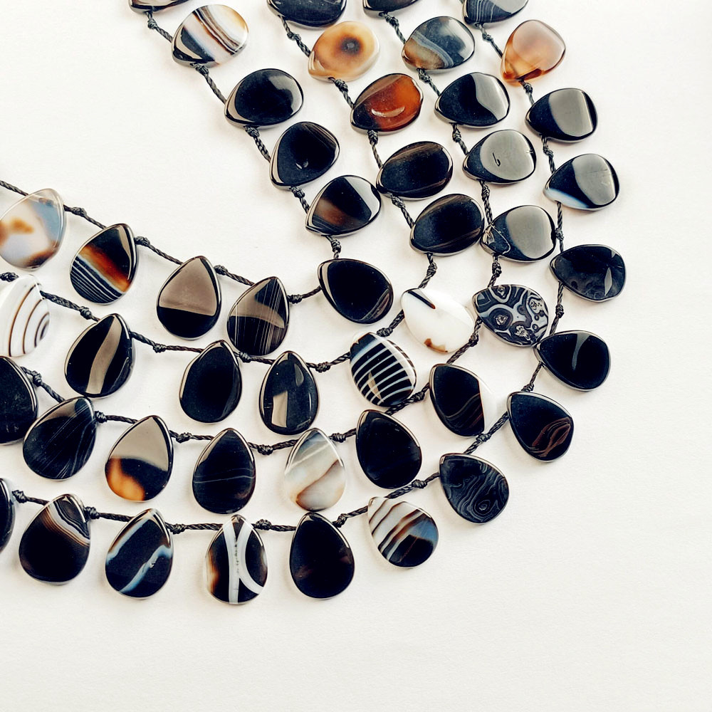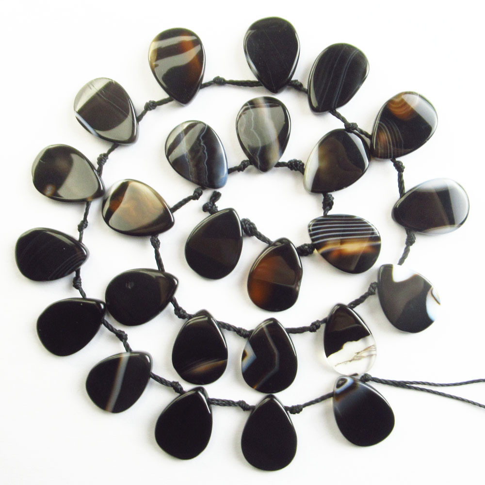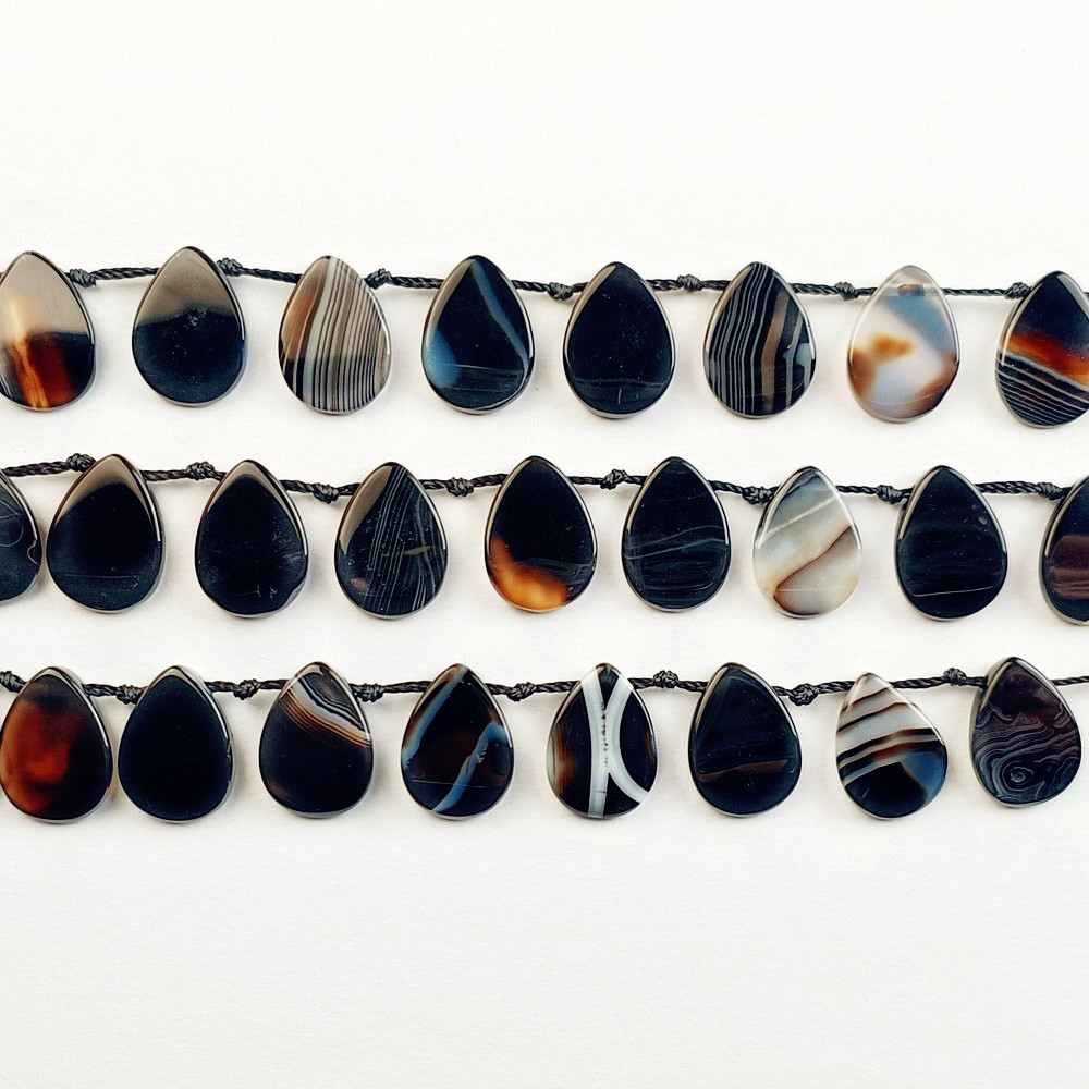 Natürliche Streifen Achat Perlen, Tropfen, DIY, schwarz, 13x18mm, Länge:ca. 38 cm, verkauft von Strang