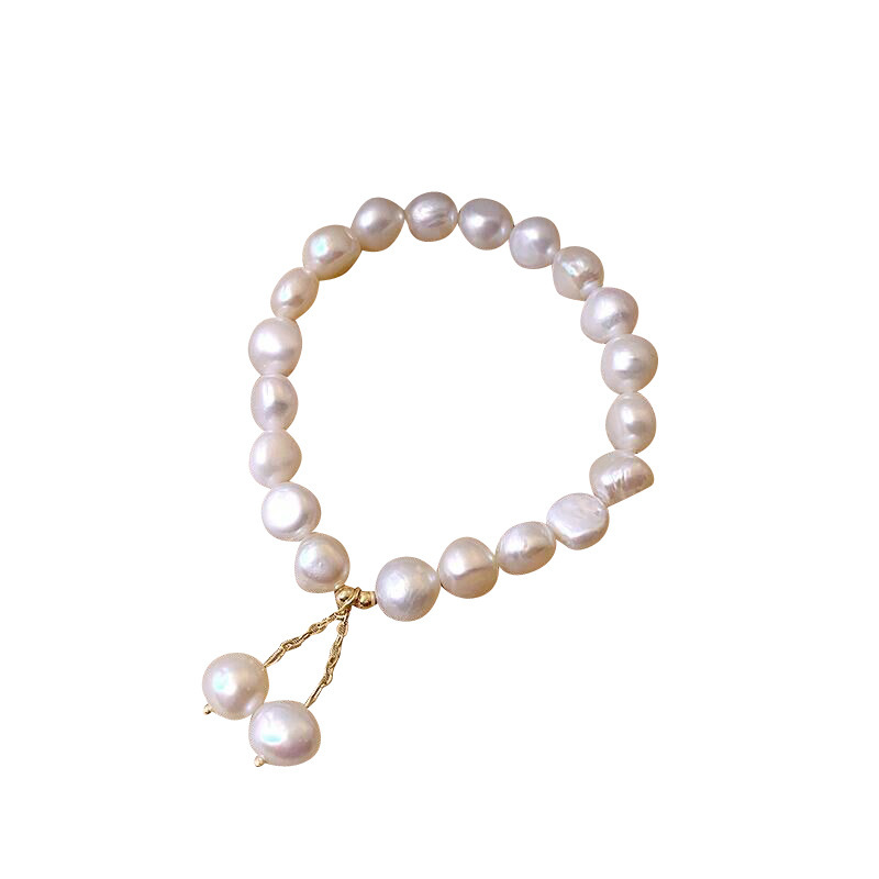 Perlen Armbänder, Natürliche kultivierte Süßwasserperlen, Knopf, natürlich, keine, 7-8mm, Länge:ca. 7.5 ZollInch, verkauft von Strang
