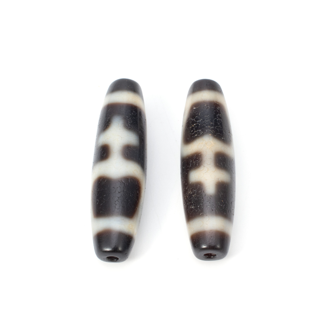 Natürliche Tibetan Achat Dzi Perlen, verschiedene Muster für Wahl & gemischt & zweifarbig, 12-14x40-41mm, Bohrung:ca. 3mm, verkauft von PC
