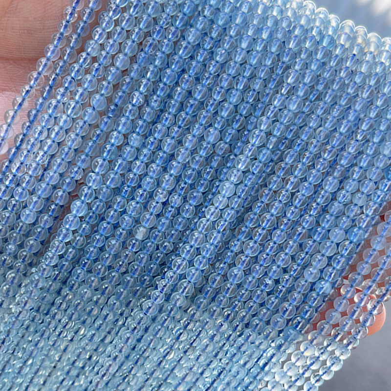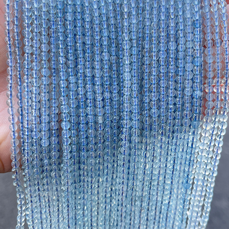 Aquamarin Perlen, rund, natürliche & DIY, 3mm, Länge:35-38 cm, verkauft von Strang