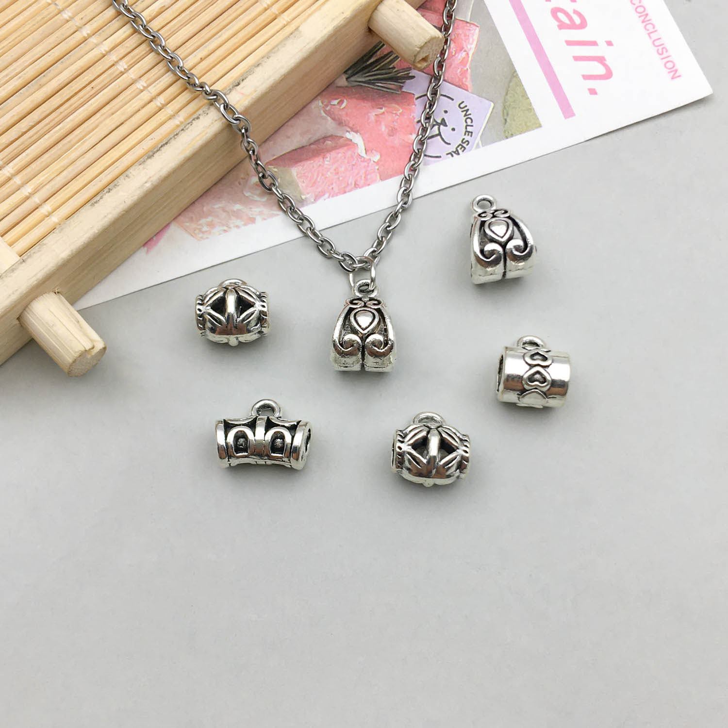 1 ancient silver tee hanging head 6*5mm hole 4.5 m