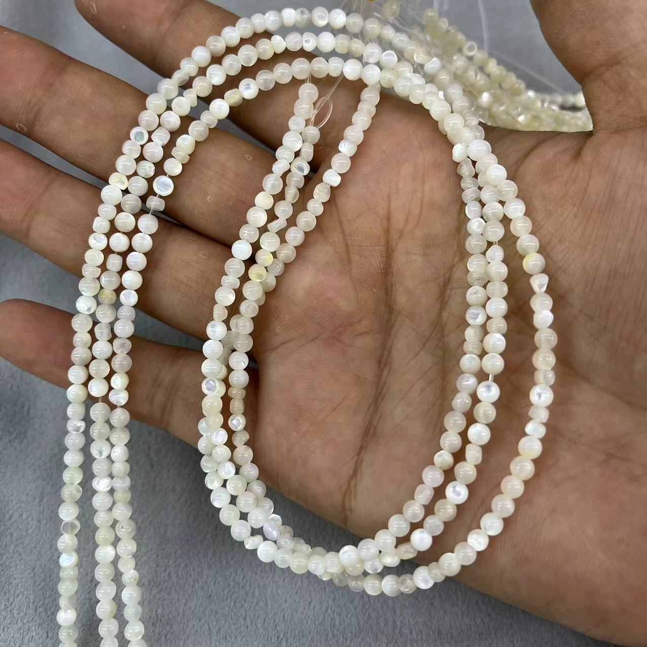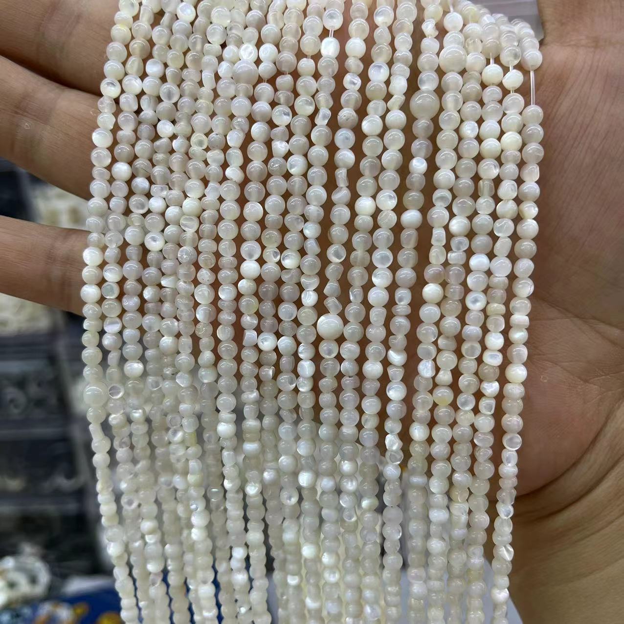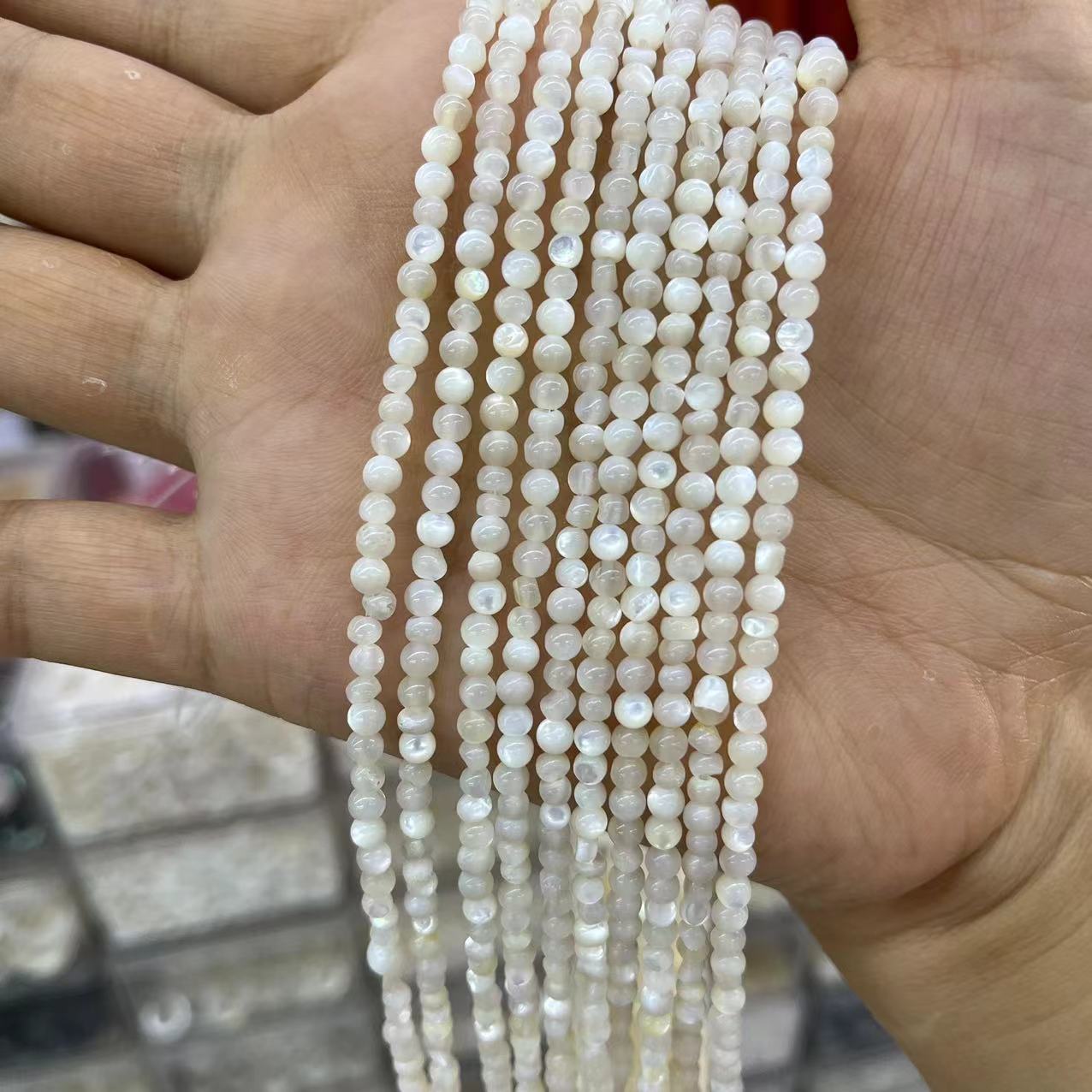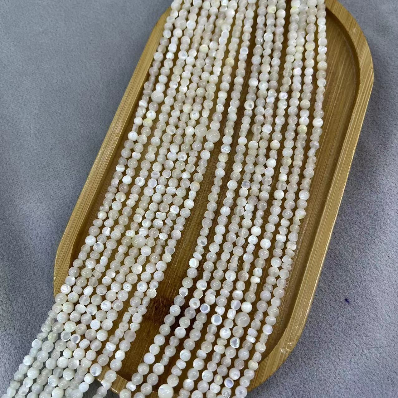 Weiße Lippenschale Perlen, Etwas rund, DIY, weiß, about:3-4mm, ca. 115PCs/Strang, verkauft von Strang