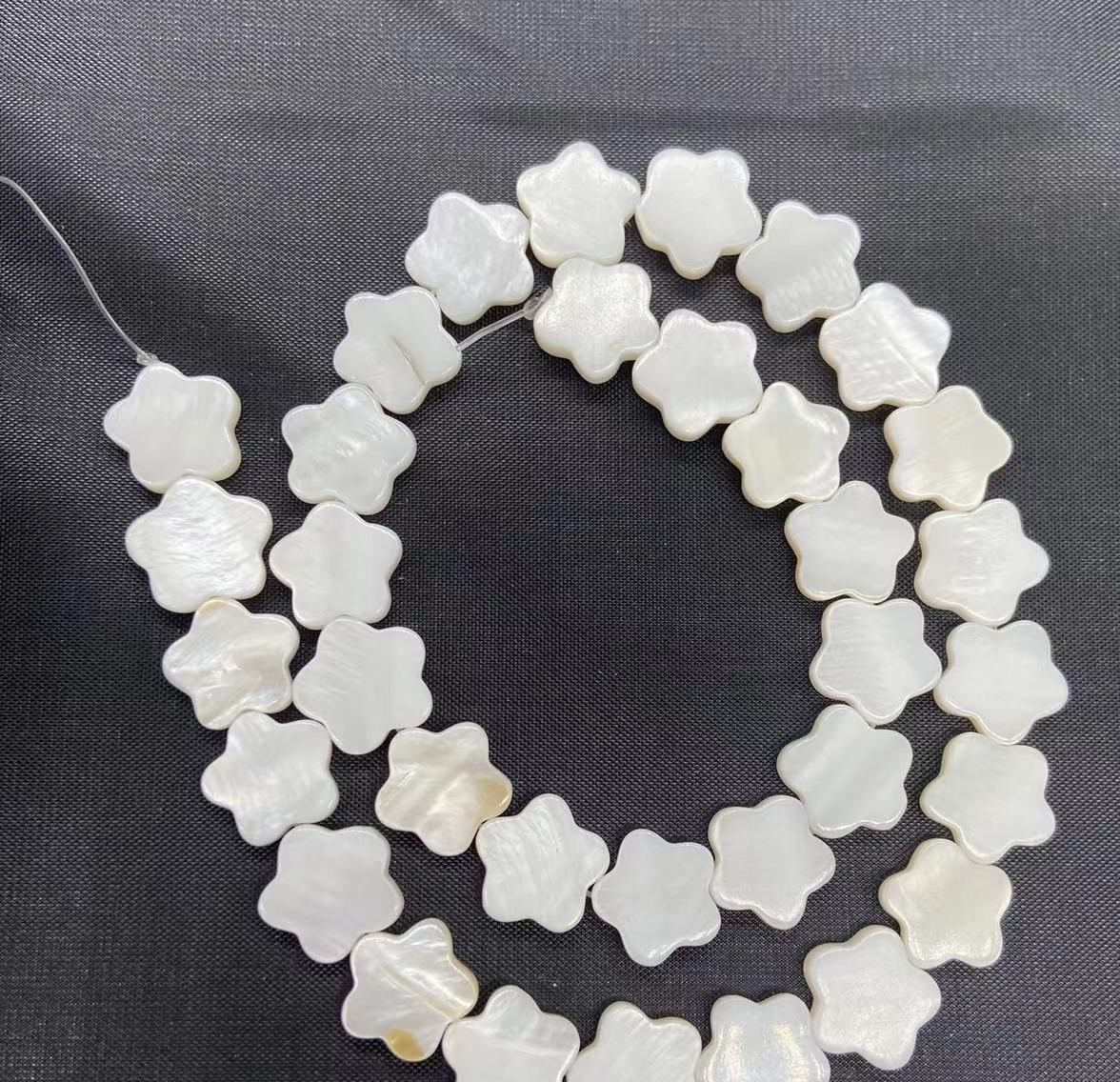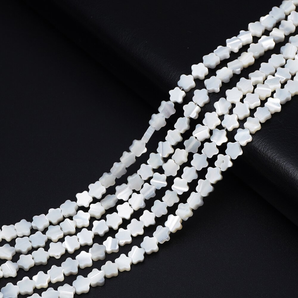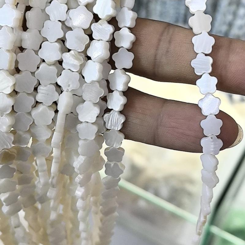 Weiße Lippenschale Perlen, Muschel, Blume, DIY, weiß, Länge:ca. 38 cm, verkauft von Strang