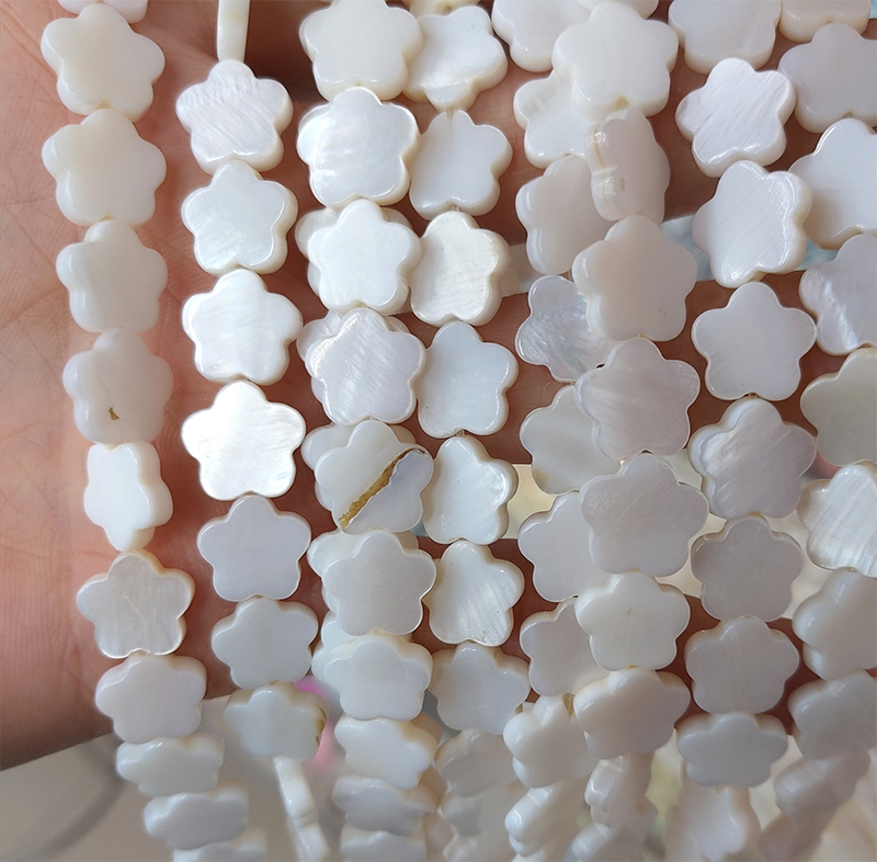 Weiße Lippenschale Perlen, Blume, 10x2mm, Bohrung:ca. 0.6mm, verkauft von PC