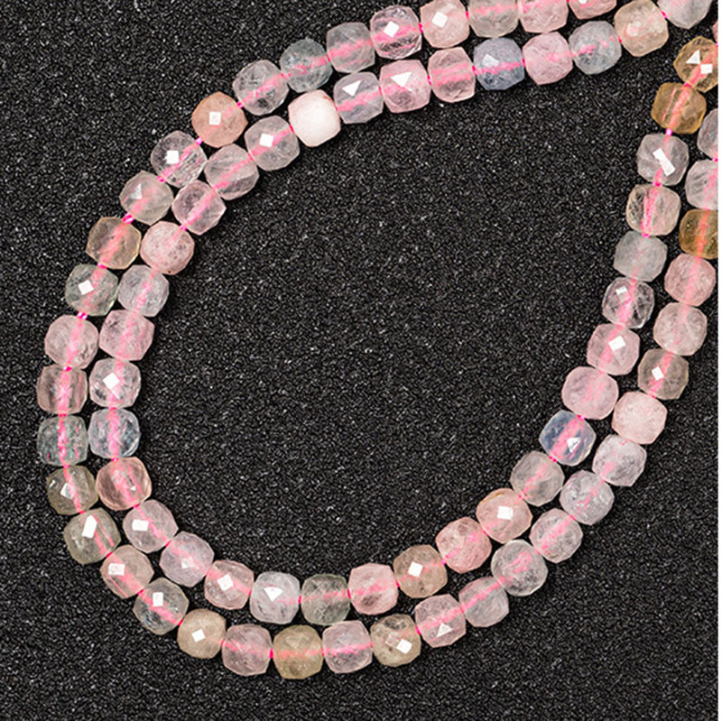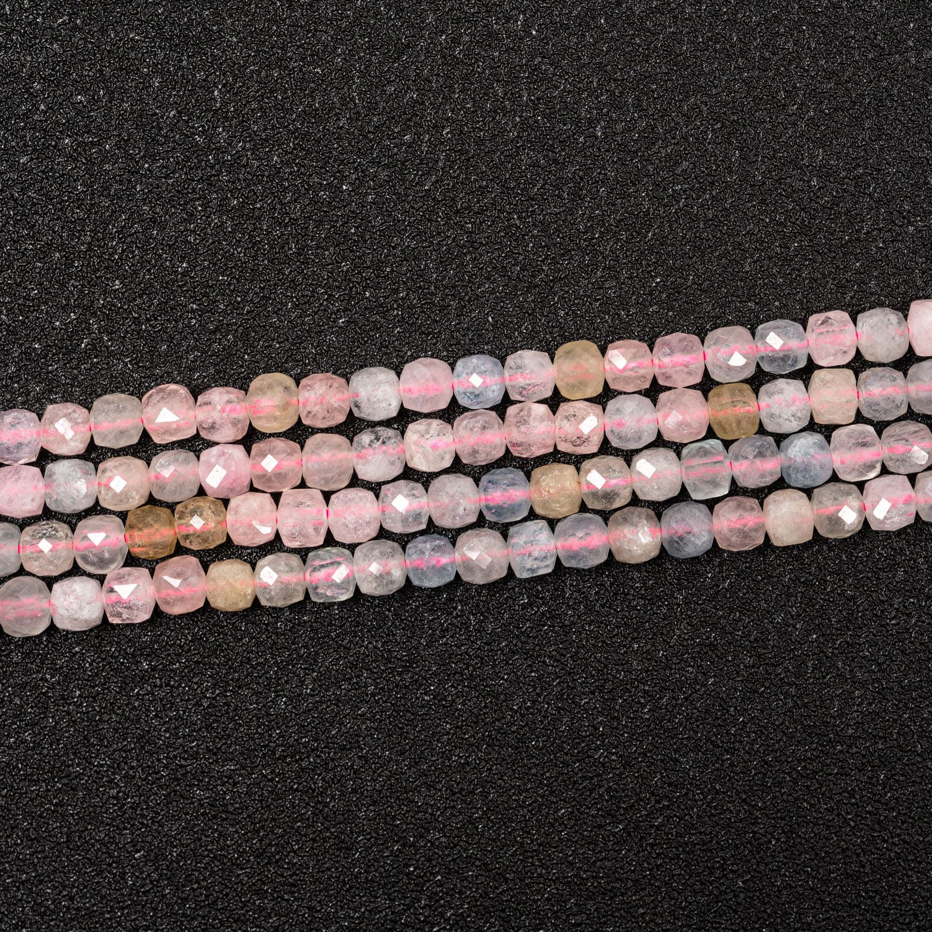 Morganit Perlen, Trommel, facettierte, 4x6x6mm, Bohrung:ca. 1mm, Länge:ca. 16 ZollInch, ca. 97PCs/Strang, verkauft von Strang