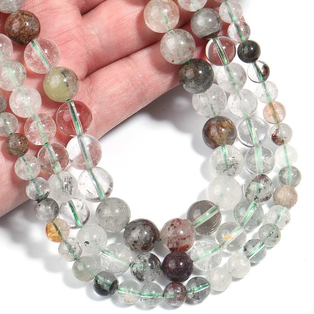 Phantom Quarz Perlen, Grüner Phantomquarz, rund, DIY & verschiedene Größen vorhanden, keine, verkauft von Strang