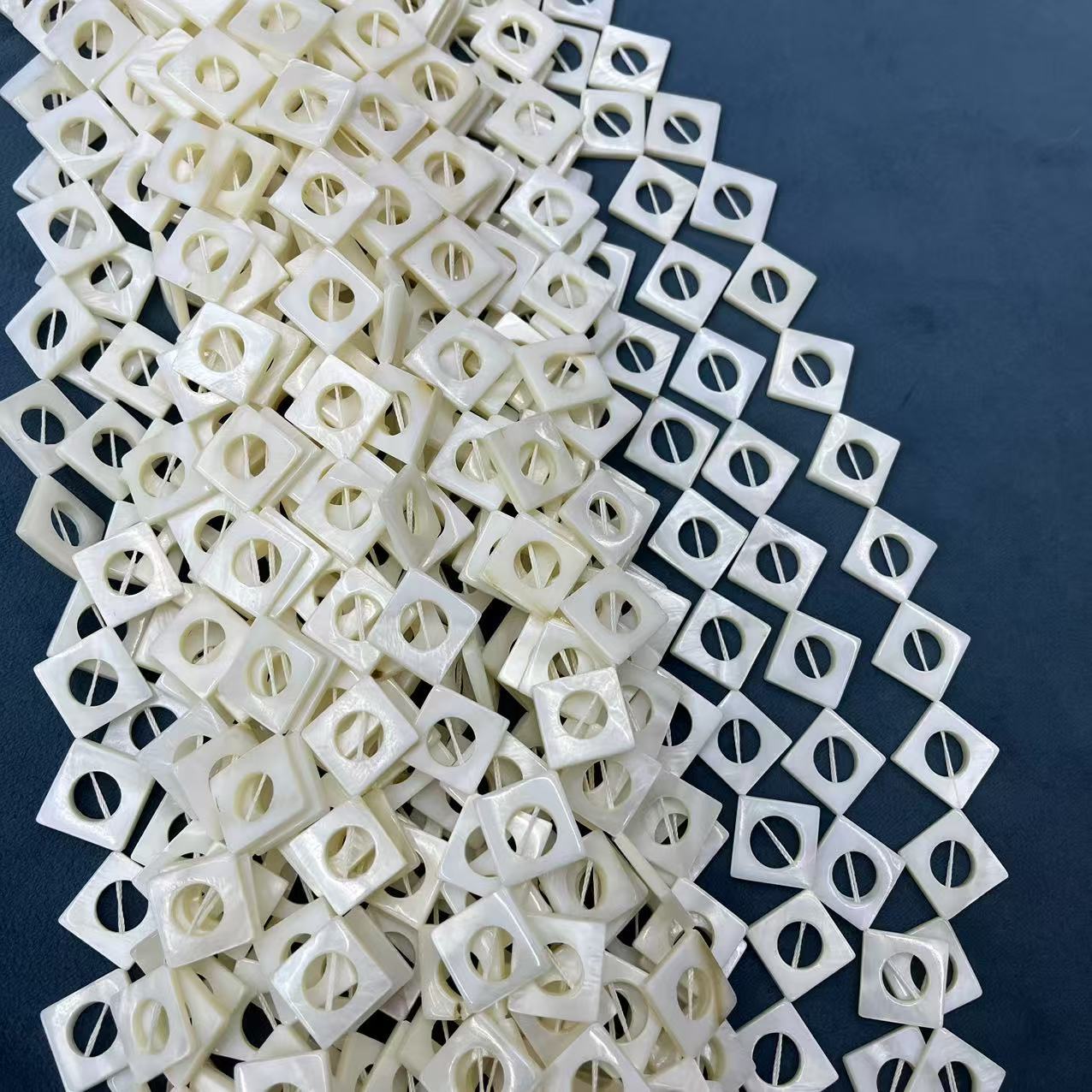 Natürliche Muschelperlen, Muschel, Quadrat, keine, Grade A, 10x10mm, ca. 35PCs/Strang, verkauft von Strang