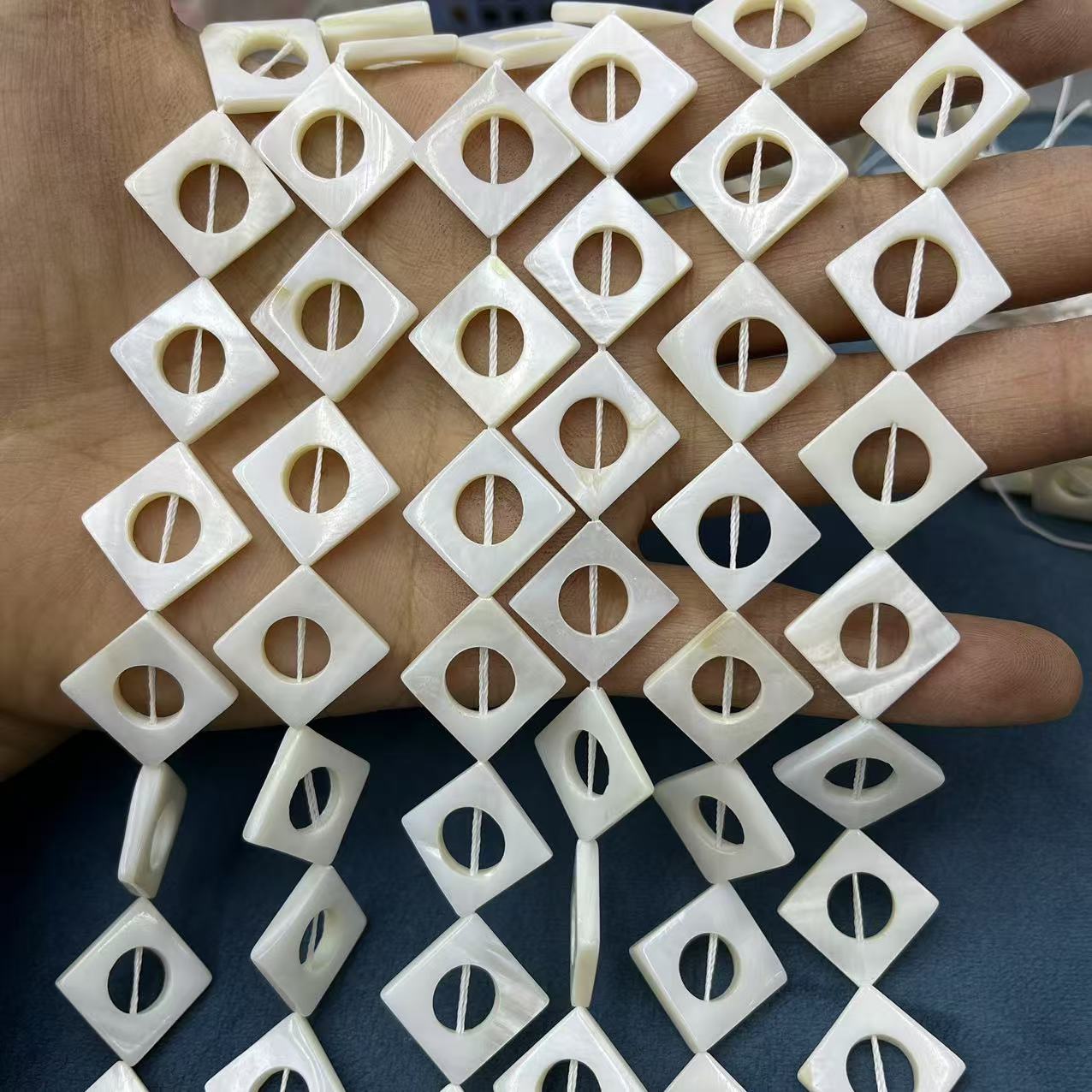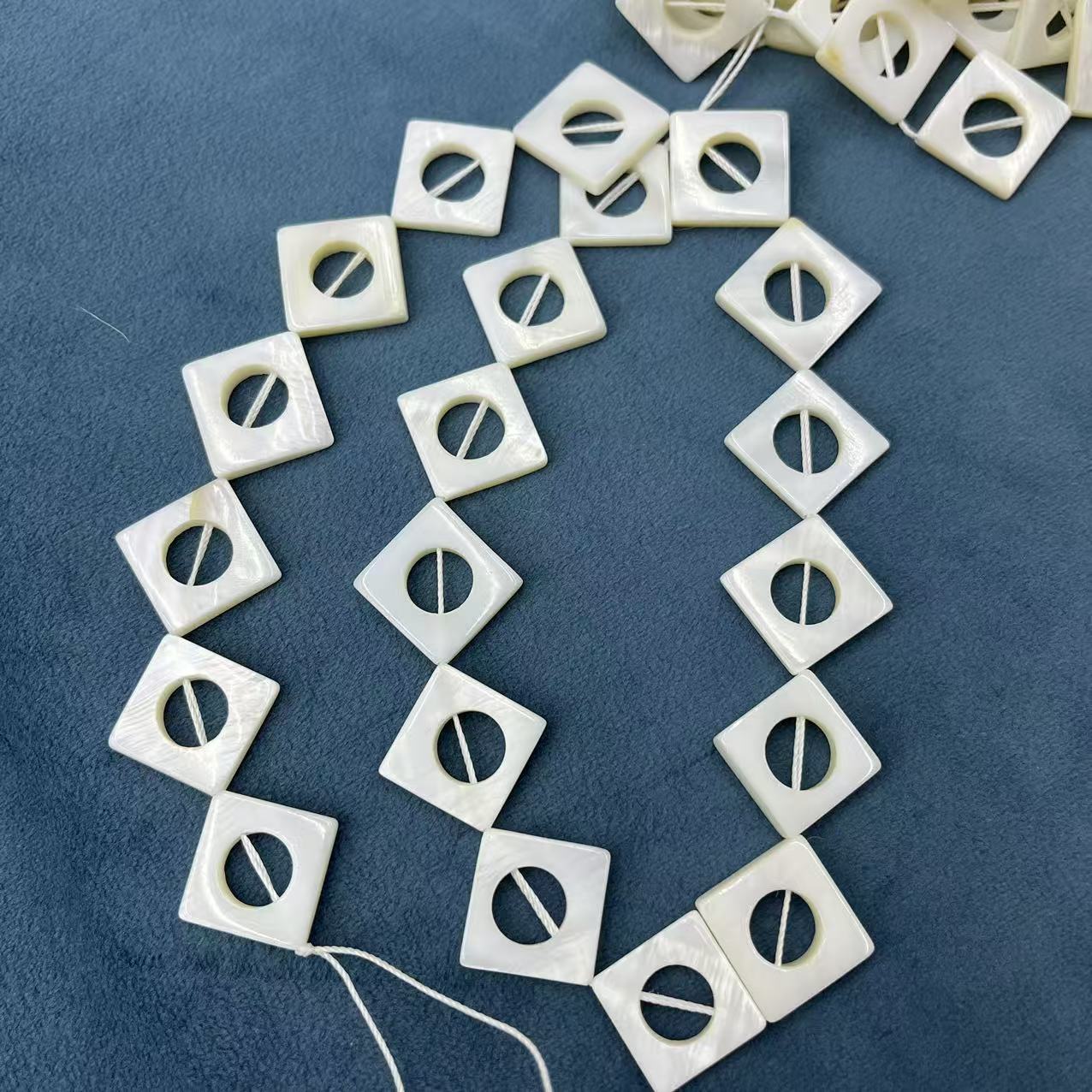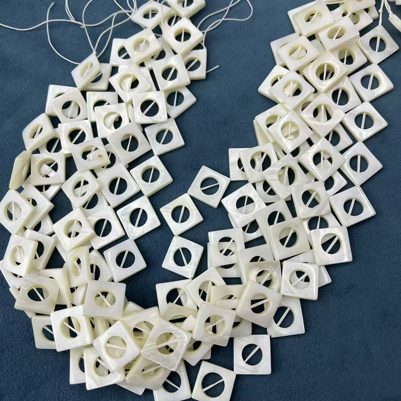 Natürliche Muschelperlen, Muschel, Quadrat, DIY, weiß, 21x21mm, ca. 20PCs/Strang, verkauft von Strang