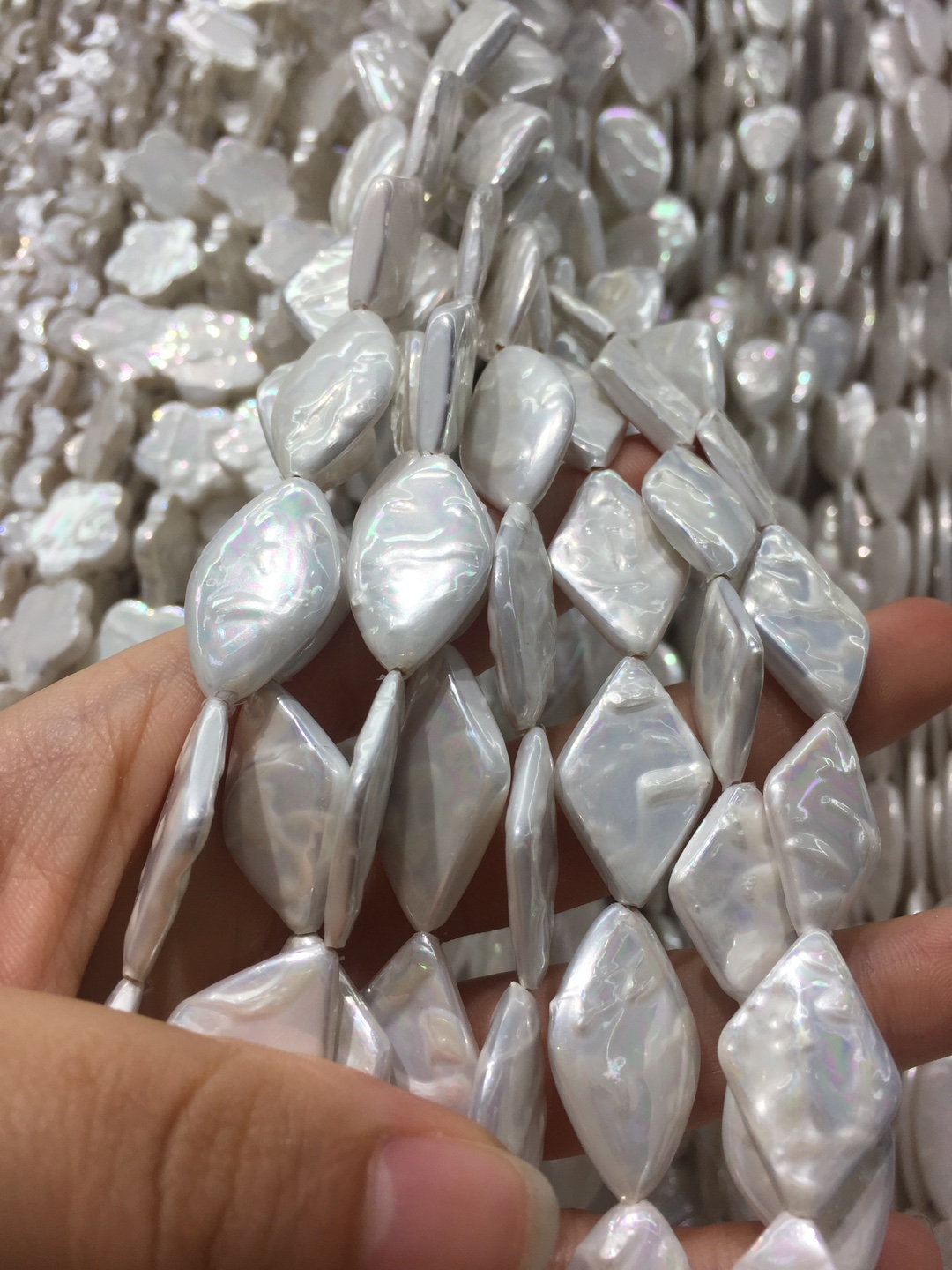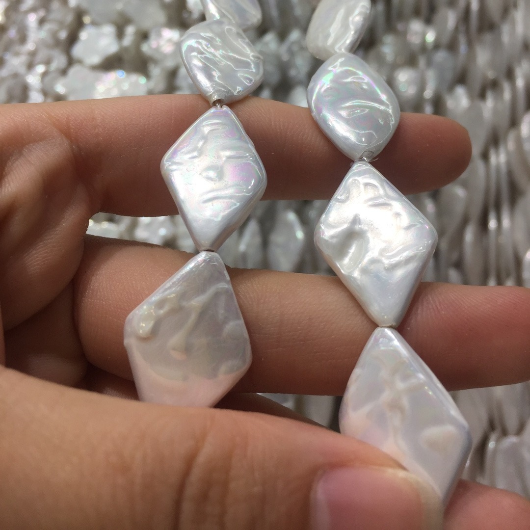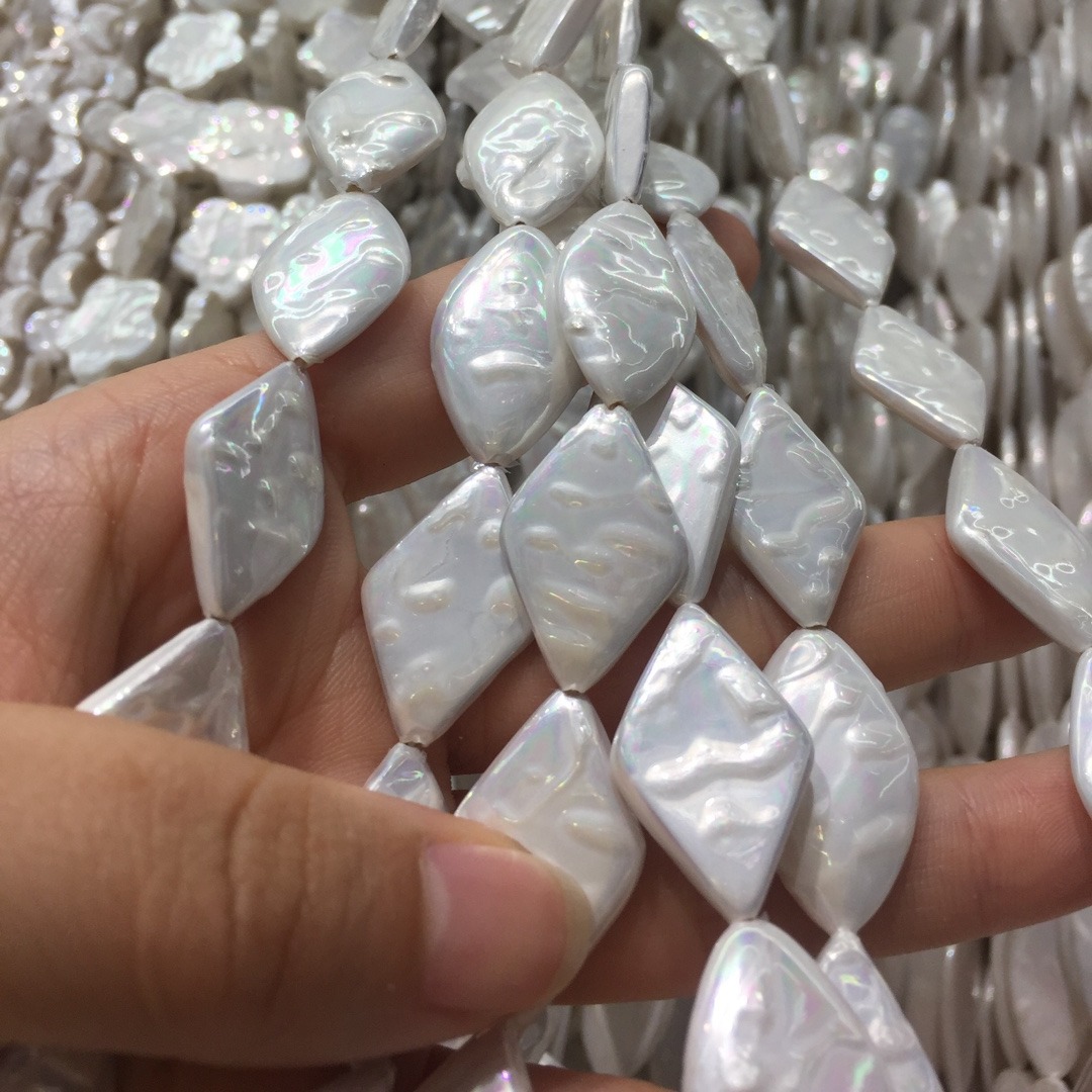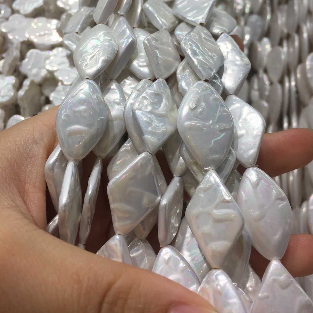 Natürliche Muschelperlen, Muschel, Rhombus, DIY, weiß, 15x24mm, verkauft von Strang