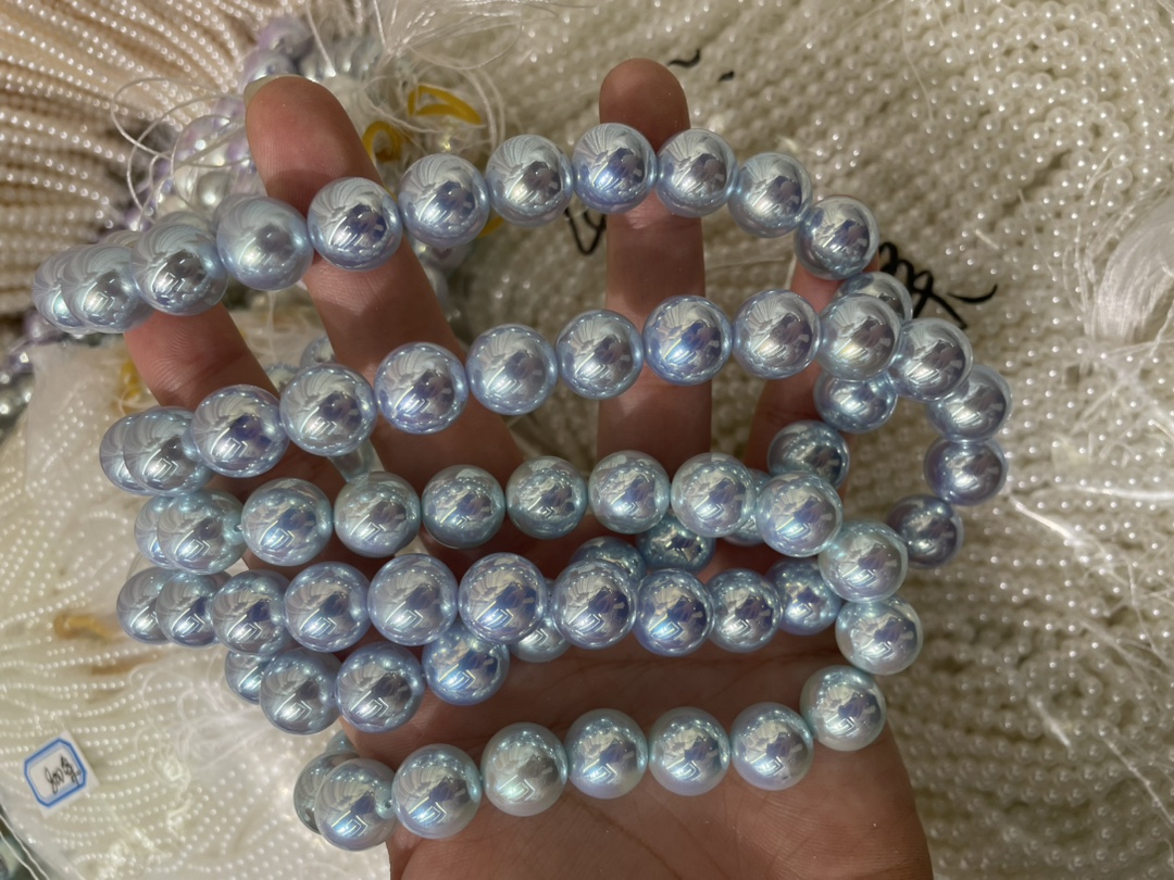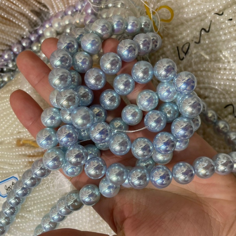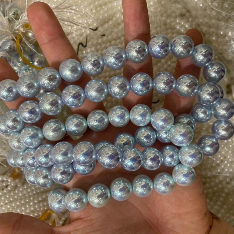 Südsee Muschelperlen, Muschelkern, rund, DIY, hellblau, 10mm, verkauft von Strang