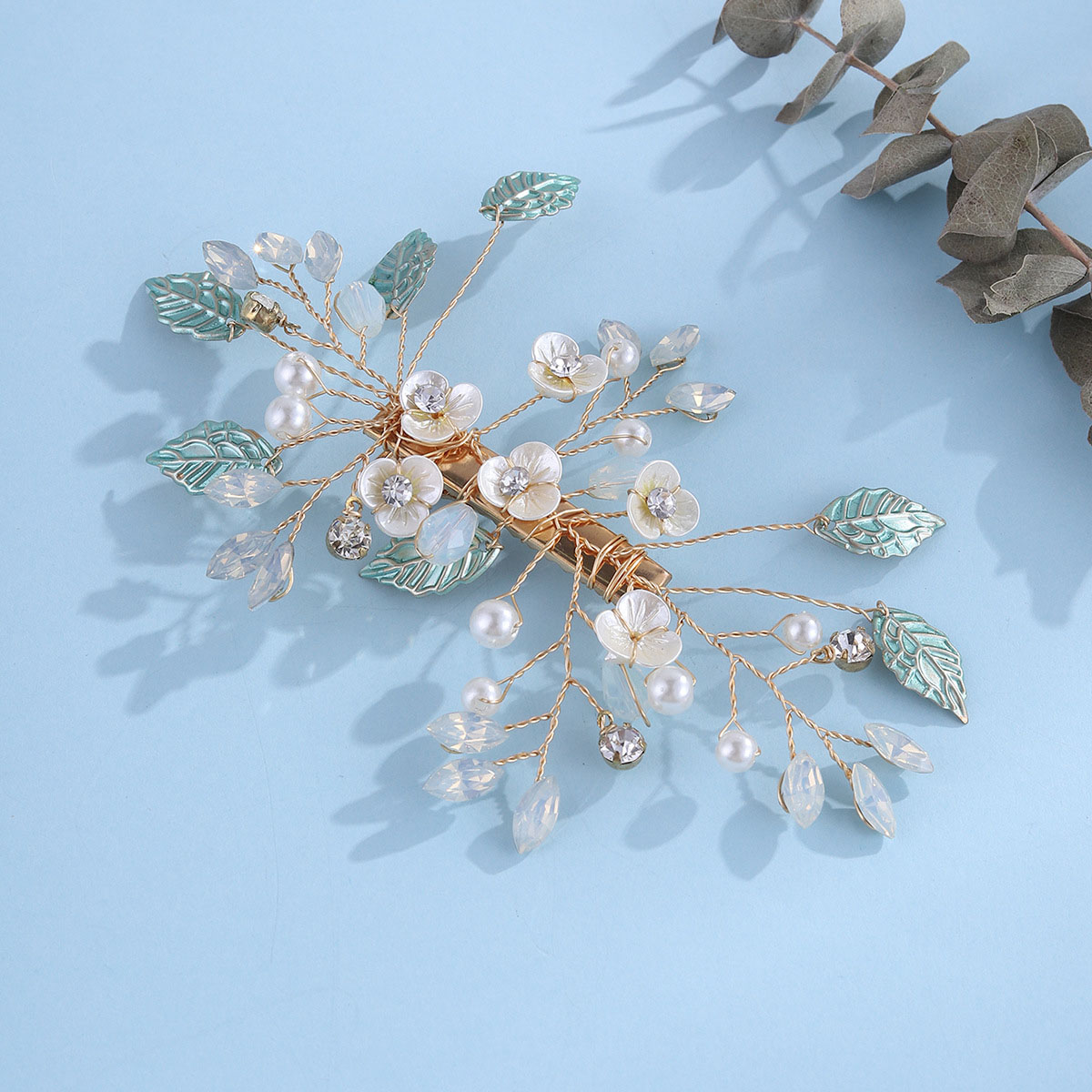 Schnabelspange, Zinklegierung, mit Kristall, Blatt, goldfarben plattiert, facettierte & mit Strass, gemischte Farben, frei von Nickel, Blei & Kadmium, 120x50mm, 30PCs/Tasche, verkauft von Tasche