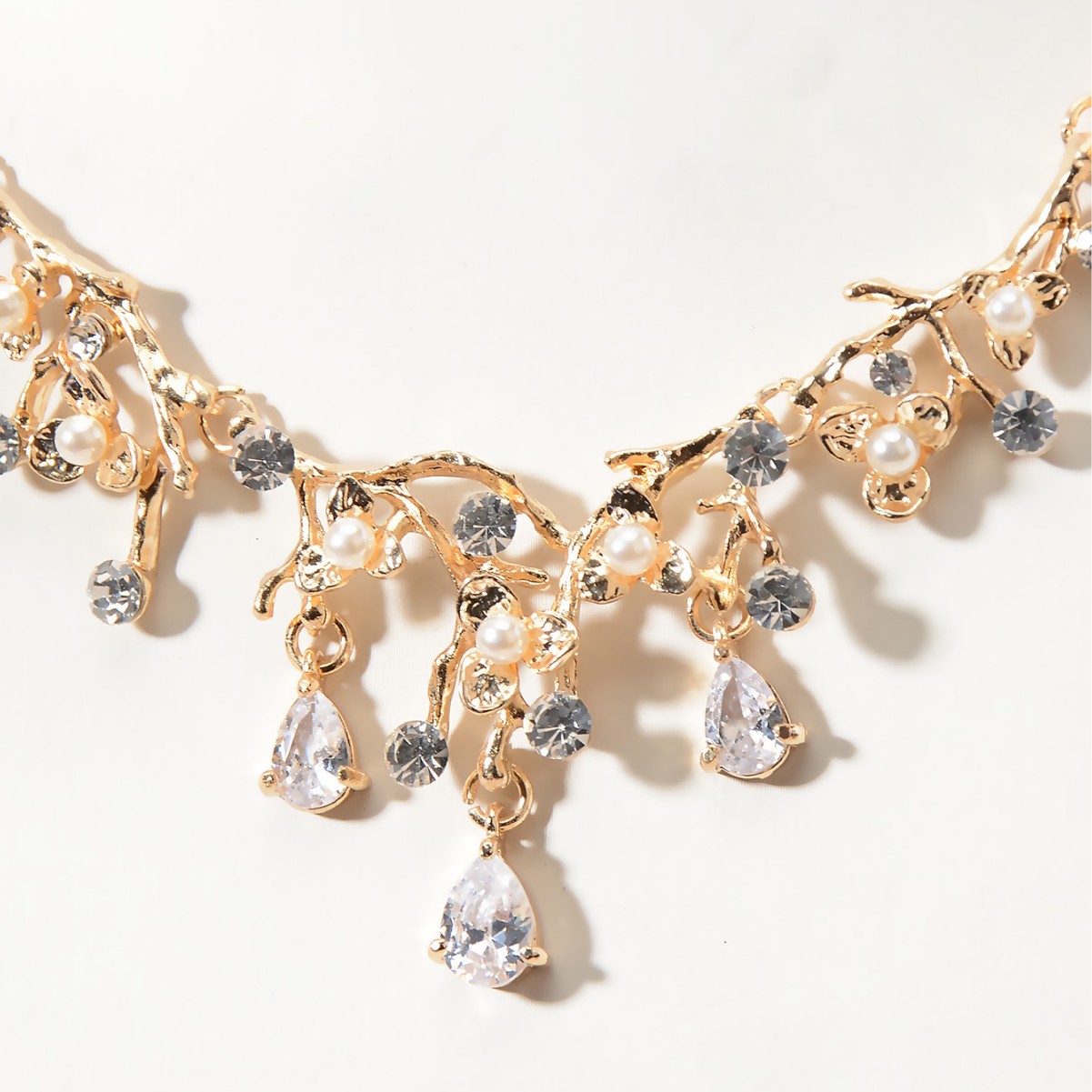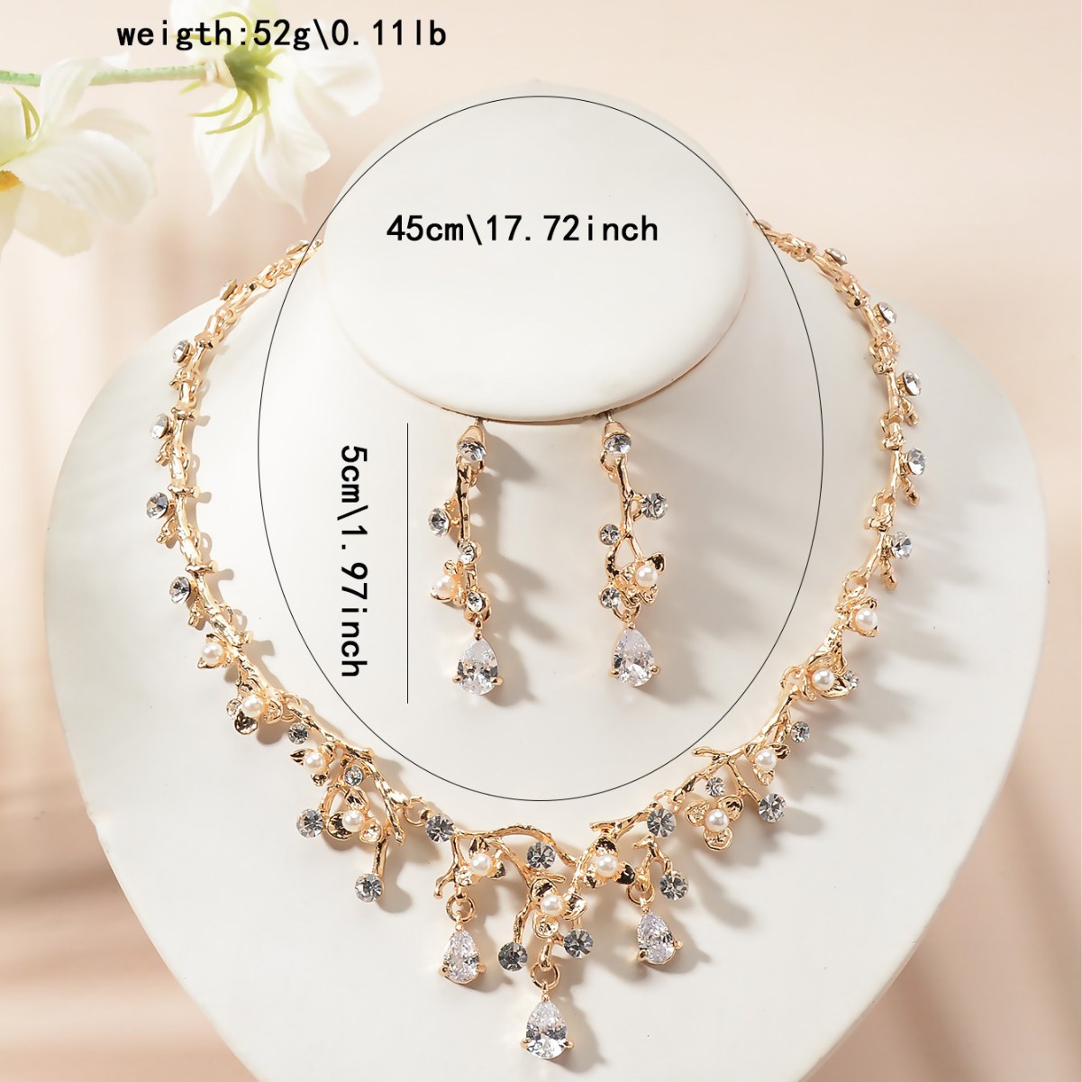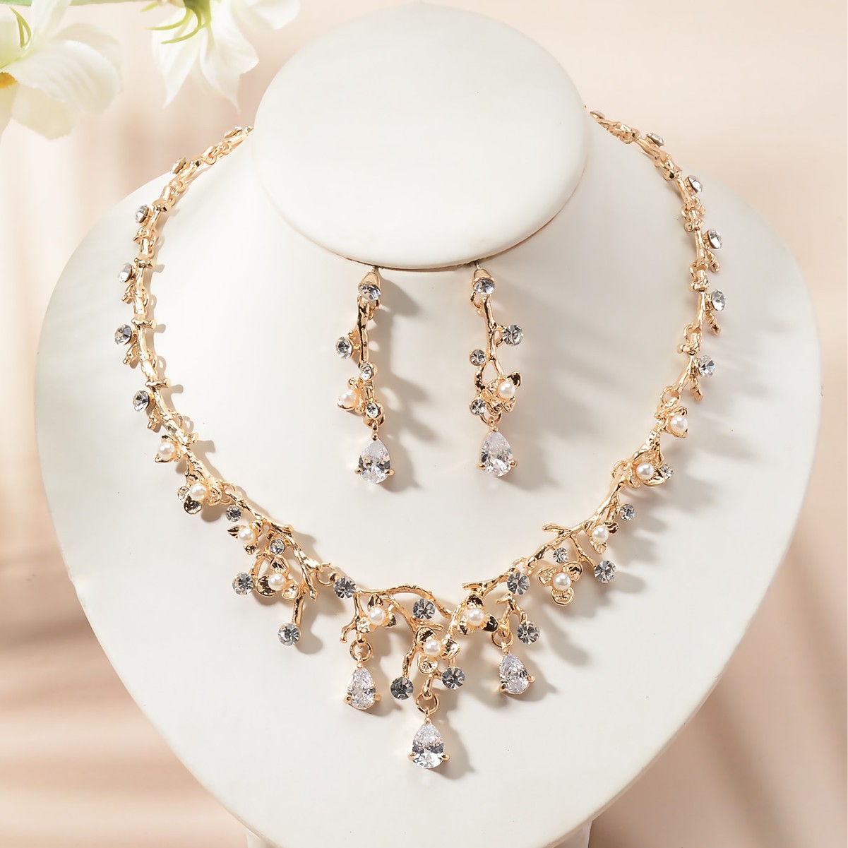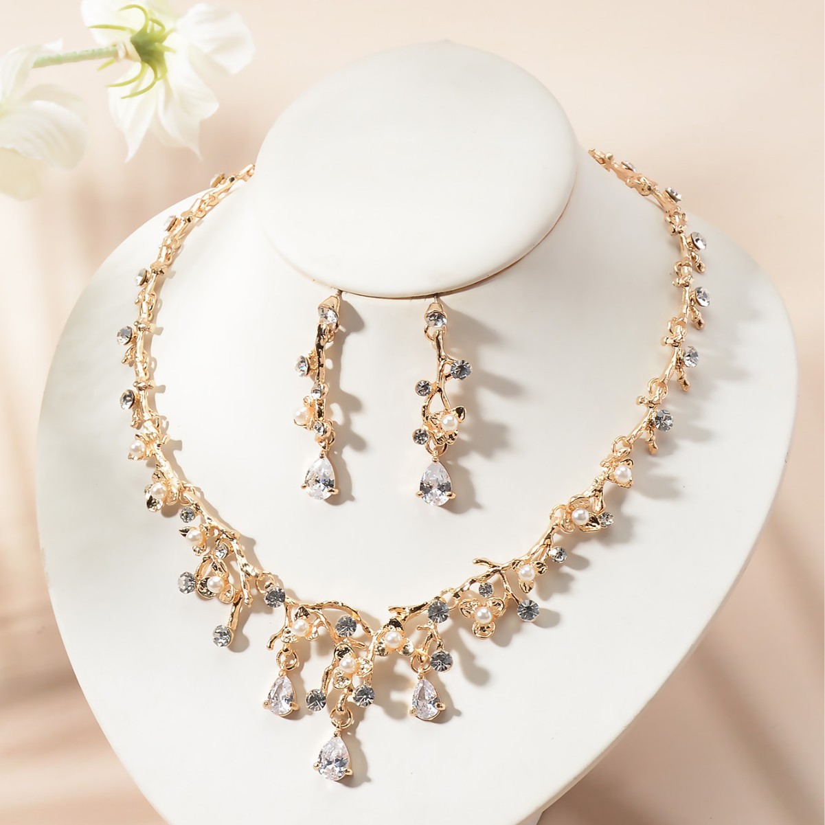 Strass Zink Legierung Schmuck Set, Zinklegierung, Ohrring & Halskette, goldfarben plattiert, 2 Stück & Modeschmuck & mit Strass, goldfarben, verkauft von setzen