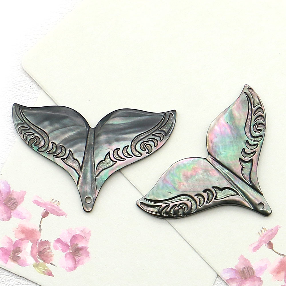 Schwarz Muschel Anhänger, Schwarze Muschel, Schmetterling, 54x39x4mm, Bohrung:ca. 2mm, verkauft von PC