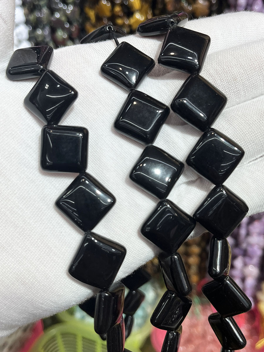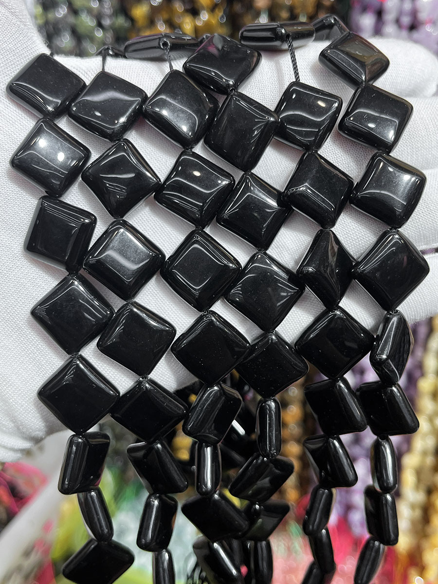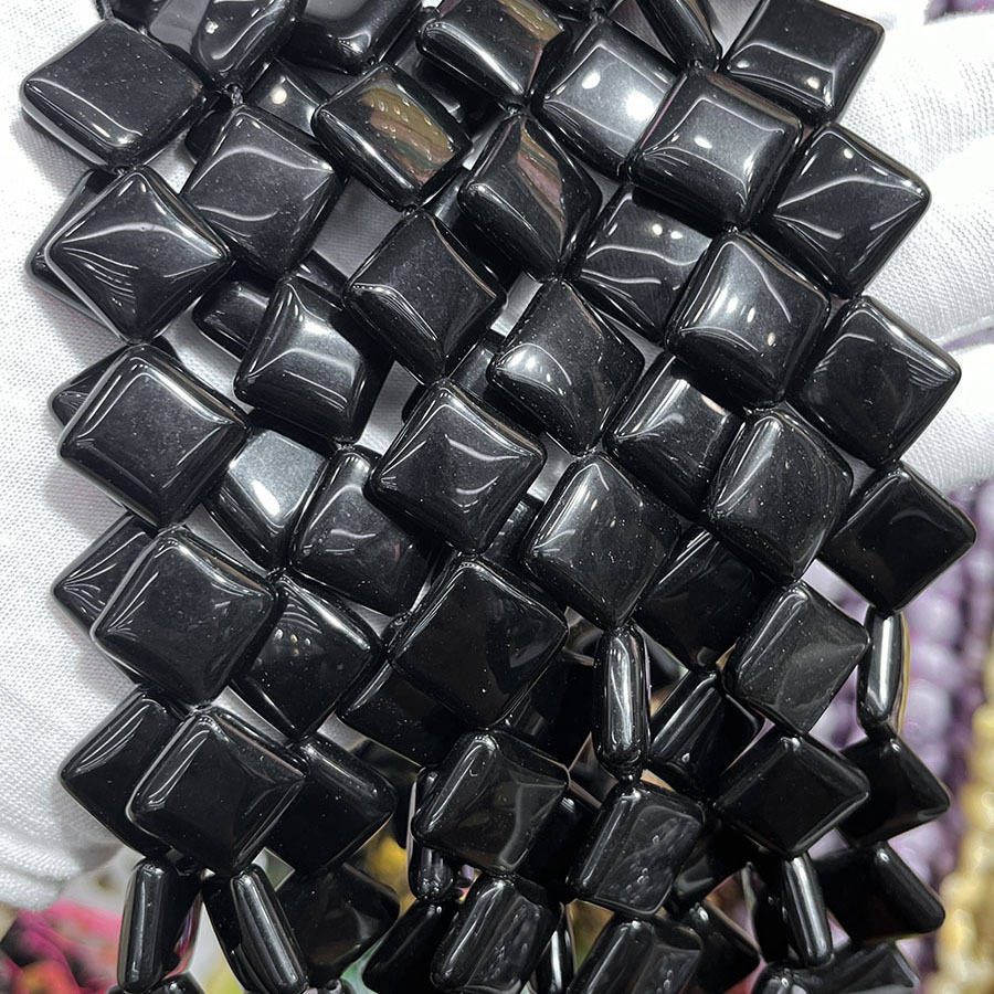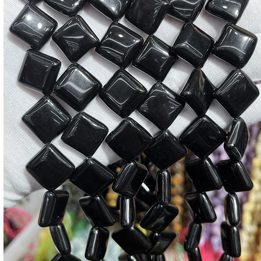 Schwarze Obsidian Perlen, Rhombus, DIY, schwarz, 15mm, Länge:38 cm, verkauft von PC