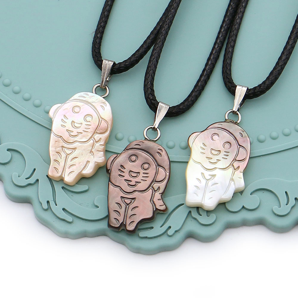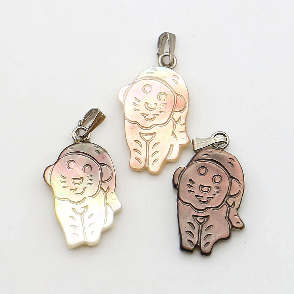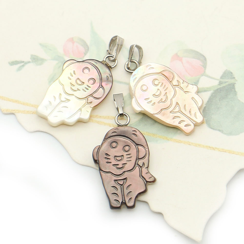 Seemuschel Anhänger, mit Wachsschnur & Eisen, Tiger, DIY, gemischte Farben, 14x23mm, verkauft von PC