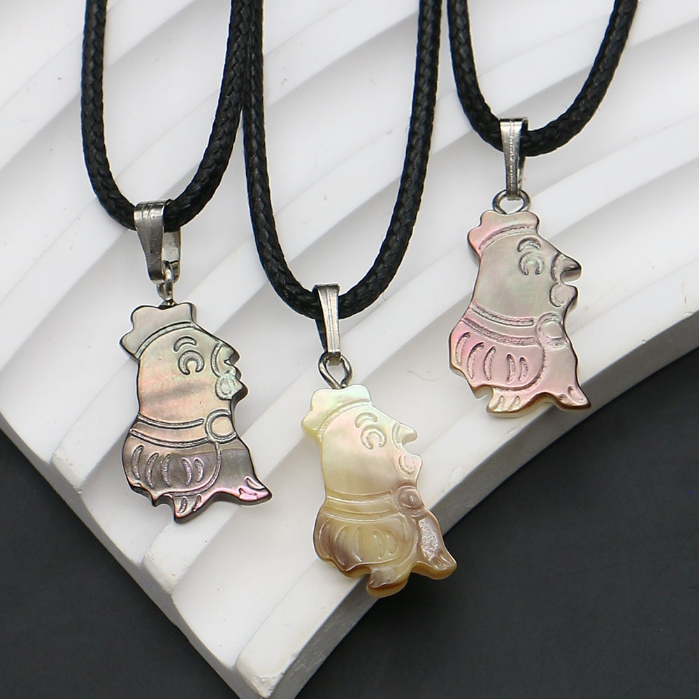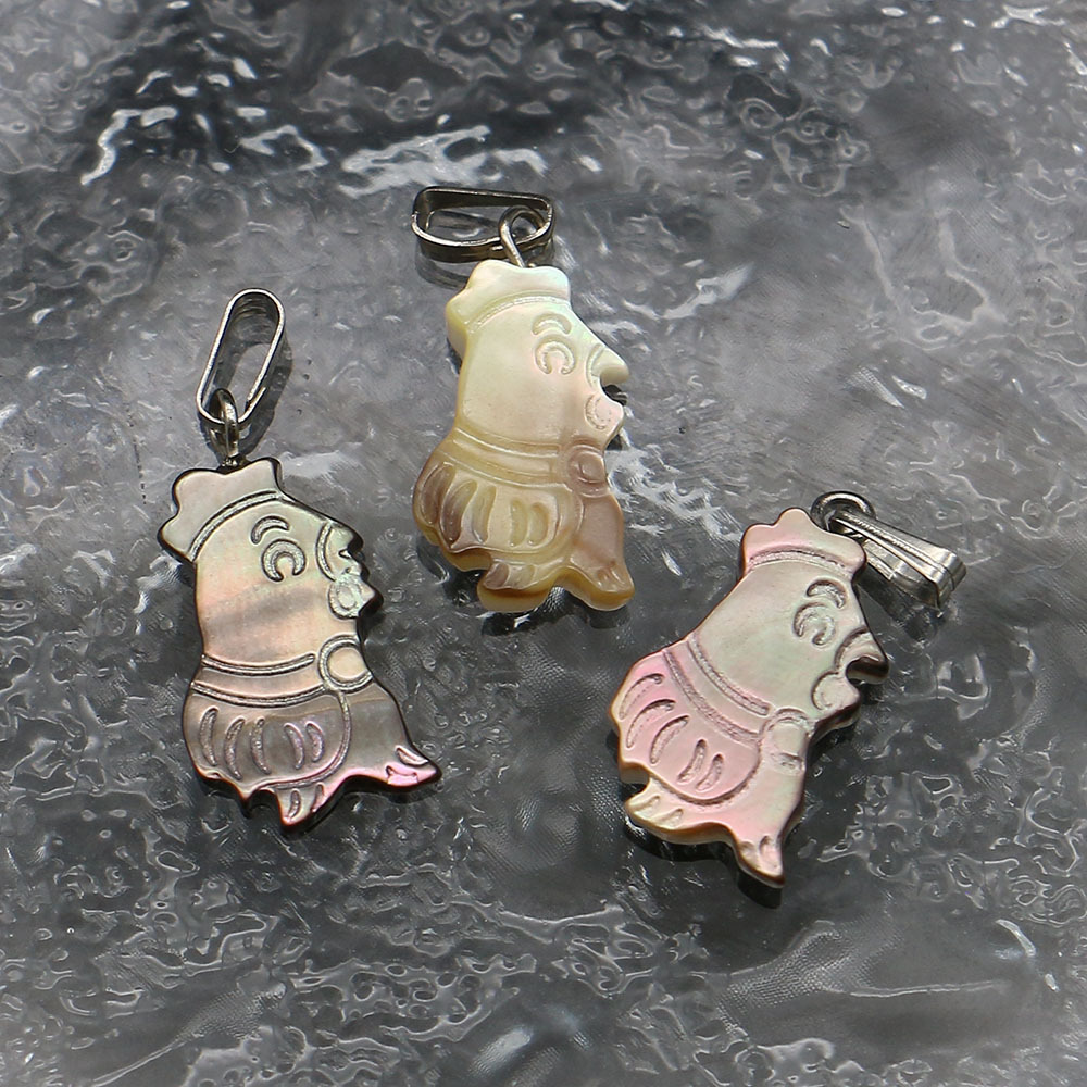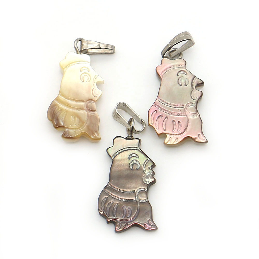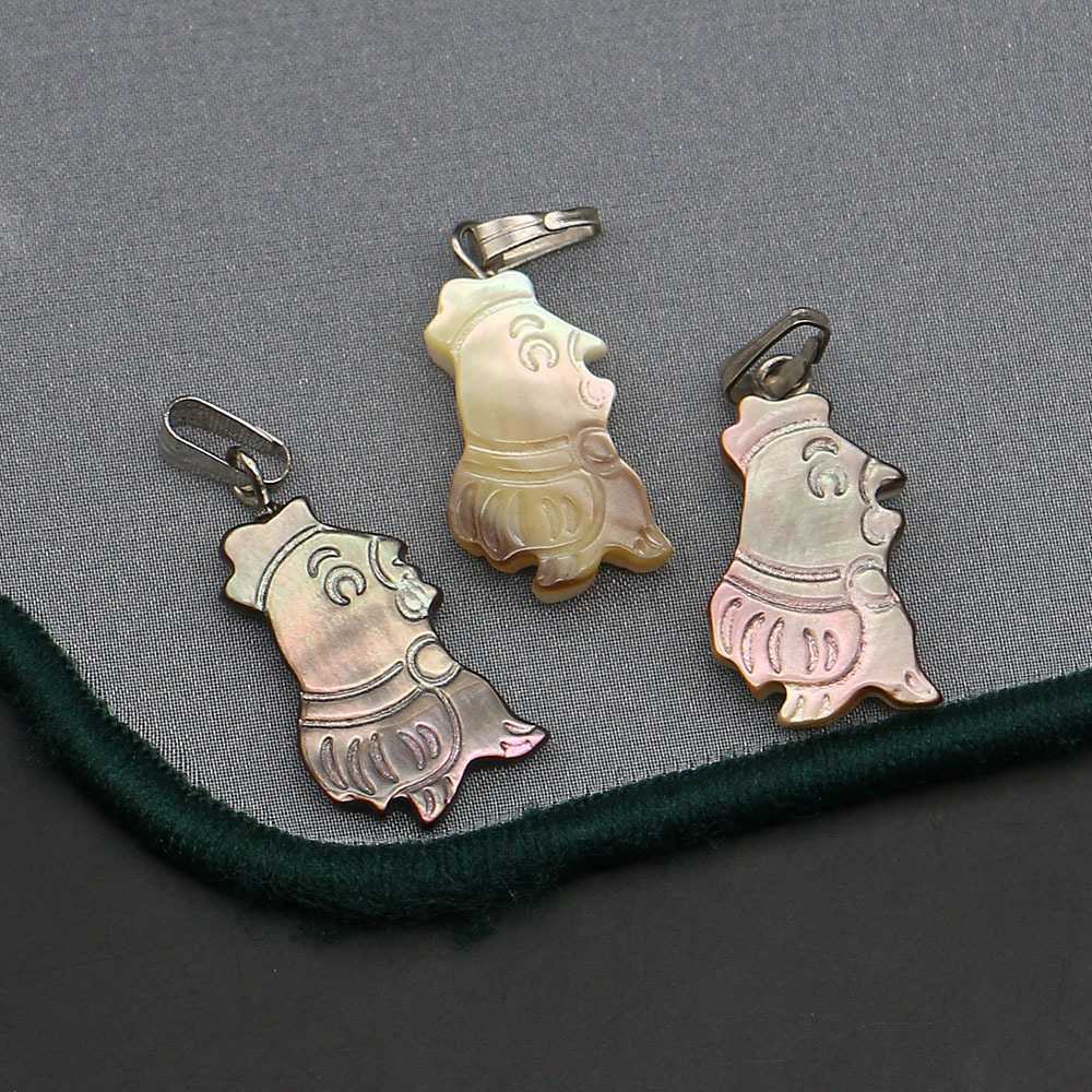 Seemuschel Anhänger, mit Wachsschnur & Eisen, Huhn, DIY, gemischte Farben, 11x21mm, verkauft von PC