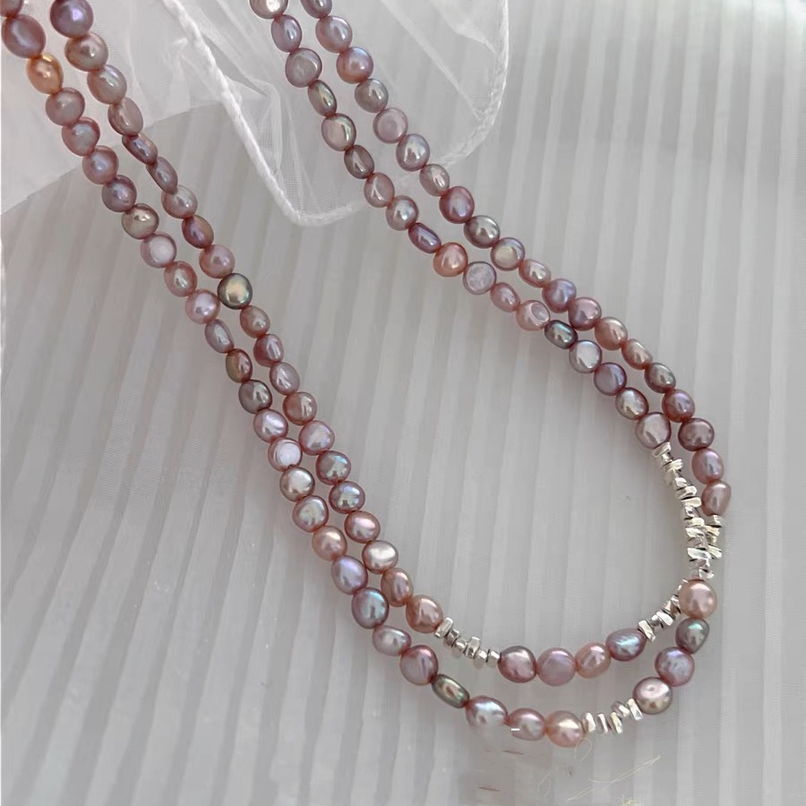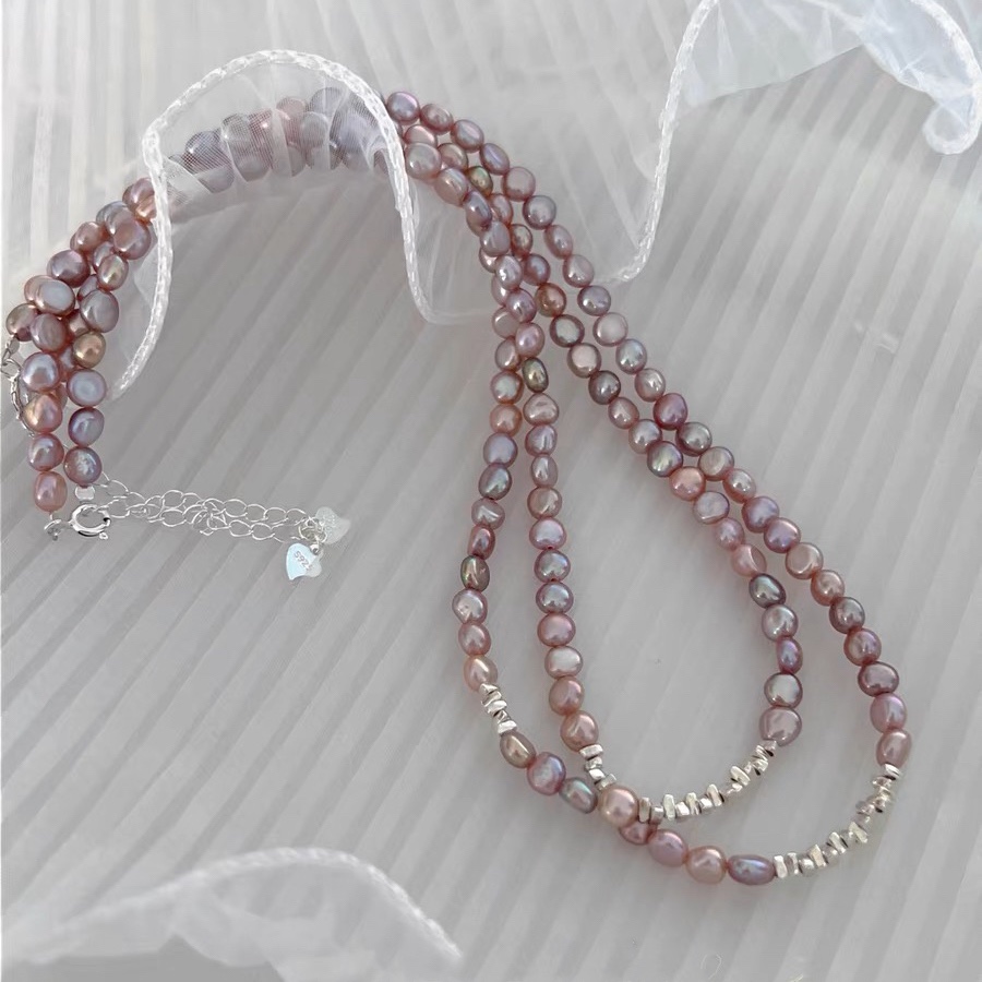 Sterling Silber Perlenkette, Natürliche kultivierte Süßwasserperlen, mit 925er Sterling Silber, Barock, goldfarben plattiert, Modeschmuck, keine, 5x6mm, verkauft von Strang