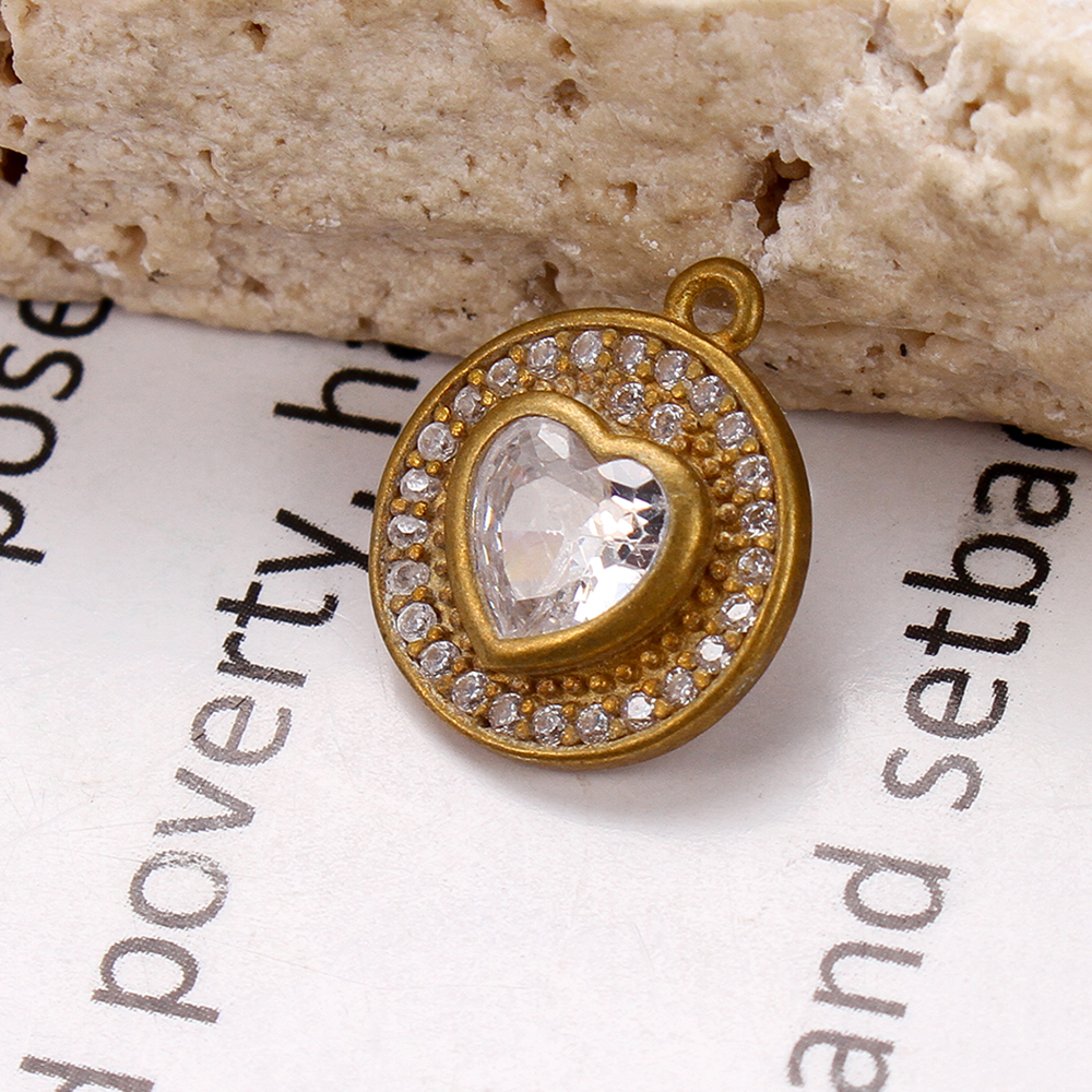 Strass Messing Anhänger, rund, plattiert, mit Strass von Nahost, keine, 12x15mm, Bohrung:ca. 1mm, verkauft von PC