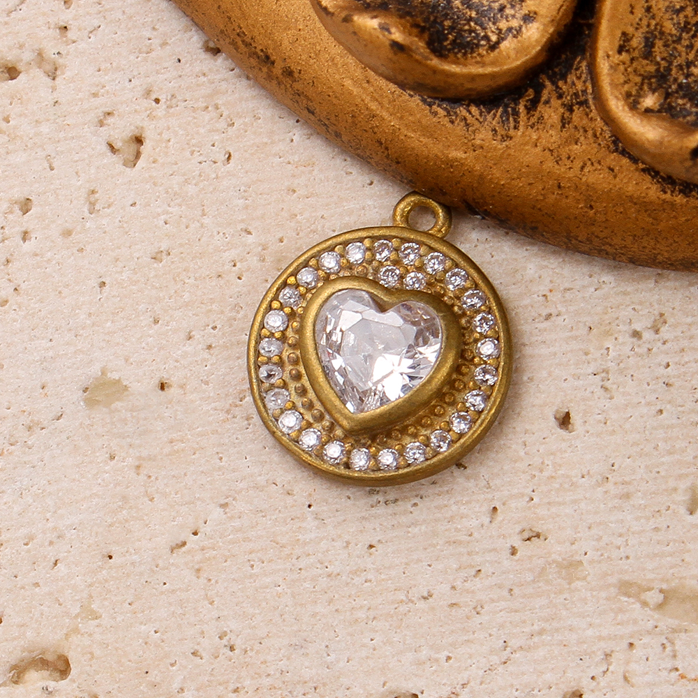 Strass Messing Anhänger, rund, plattiert, mit Strass, keine, 18x21mm, Bohrung:ca. 1.5mm, verkauft von PC