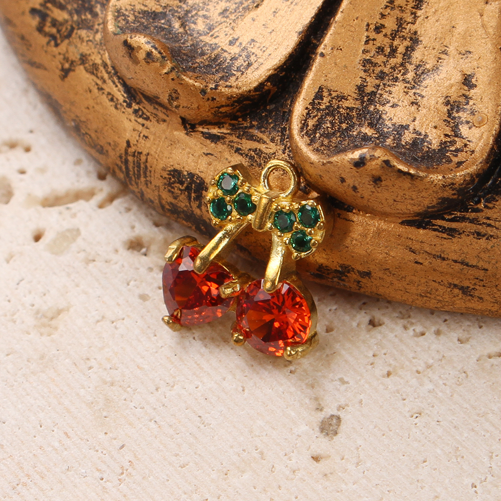 Strass Messing Anhänger, Kirsche, plattiert, DIY & mit Strass, goldfarben, 10.74x2.7x12.11mm, verkauft von PC