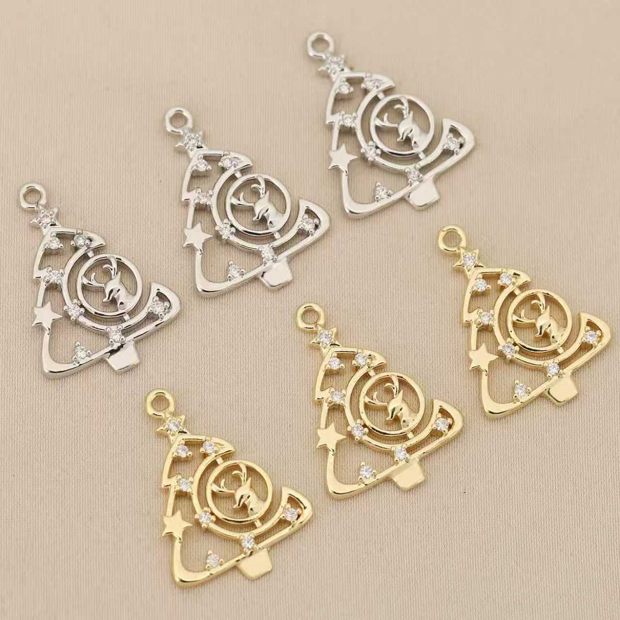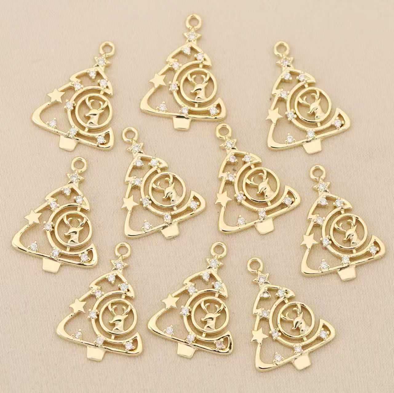 Strass Messing Anhänger, Weihnachtsbaum, plattiert, DIY & mit Strass & hohl, keine, 10PCs/Tasche, verkauft von Tasche