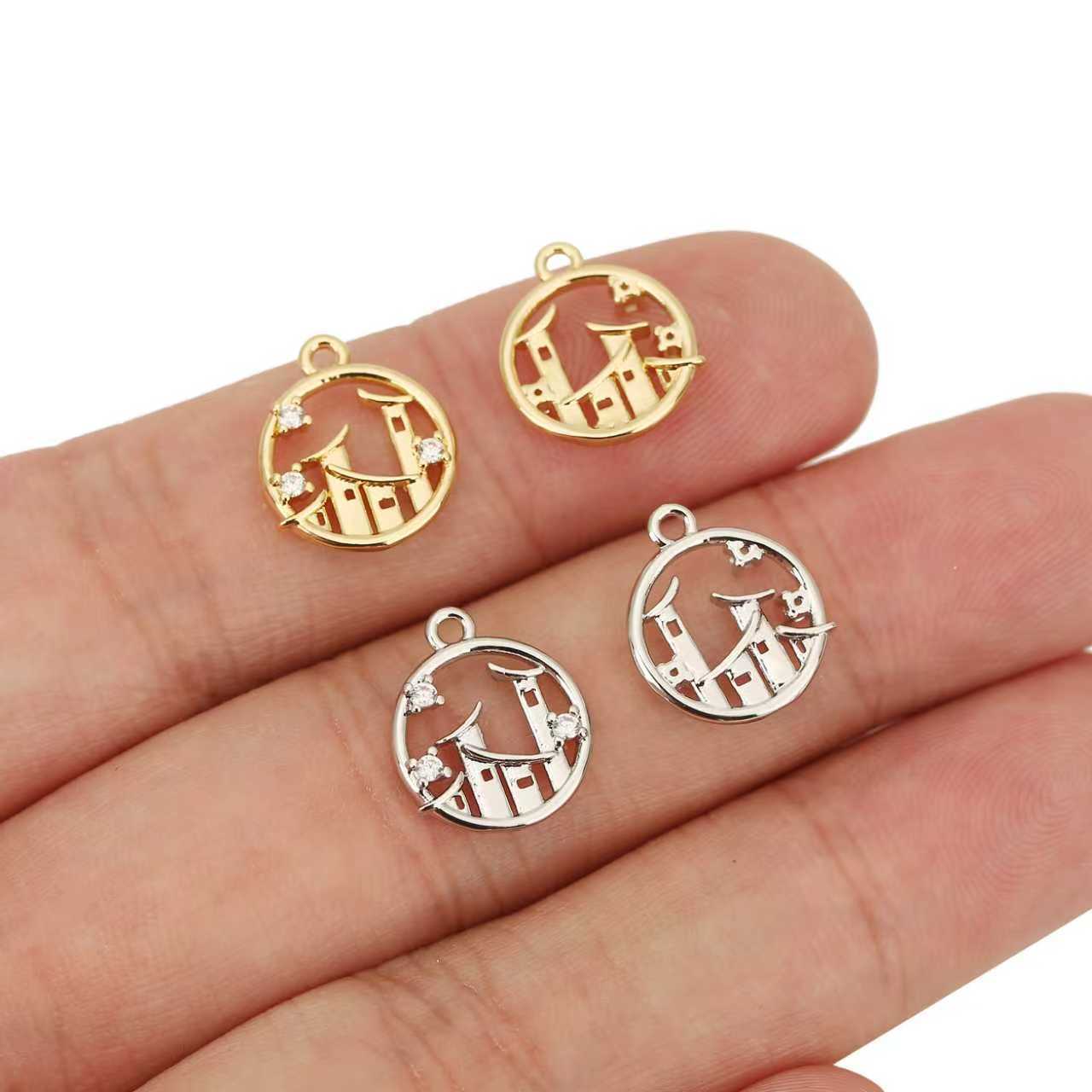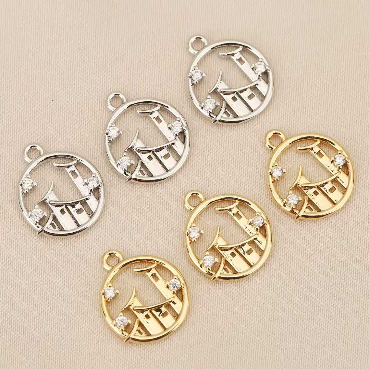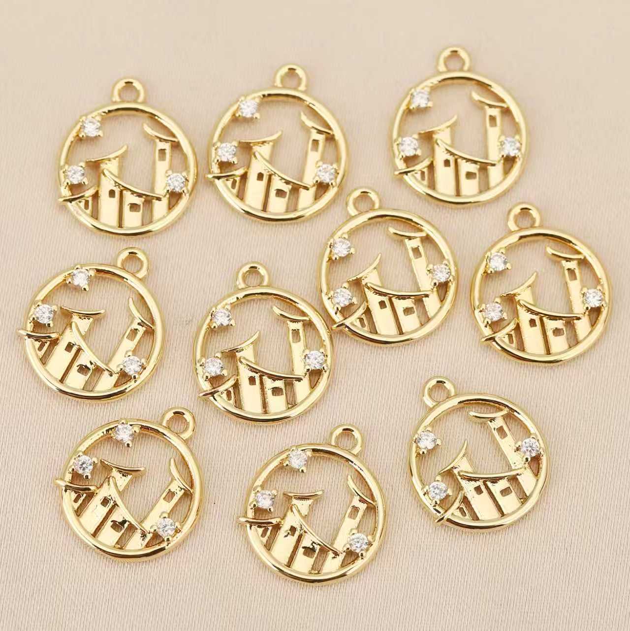 Strass Messing Anhänger, rund, plattiert, mit Strass von Nahost, keine, 12x15mm, Bohrung:ca. 1mm, verkauft von PC