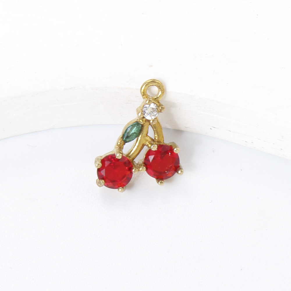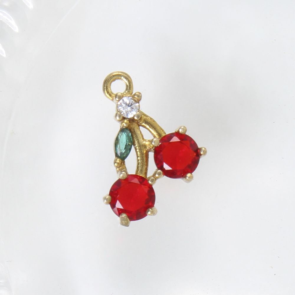Strass Messing Anhänger, Kirsche, goldfarben plattiert, DIY & mit Strass, goldfarben, 12.8x9.7x0.5mm, verkauft von PC