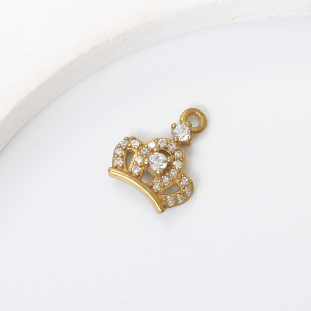 Strass Messing Anhänger, Krone, plattiert, DIY & mit Strass, goldfarben, 12x9.7x2.8mm, verkauft von PC