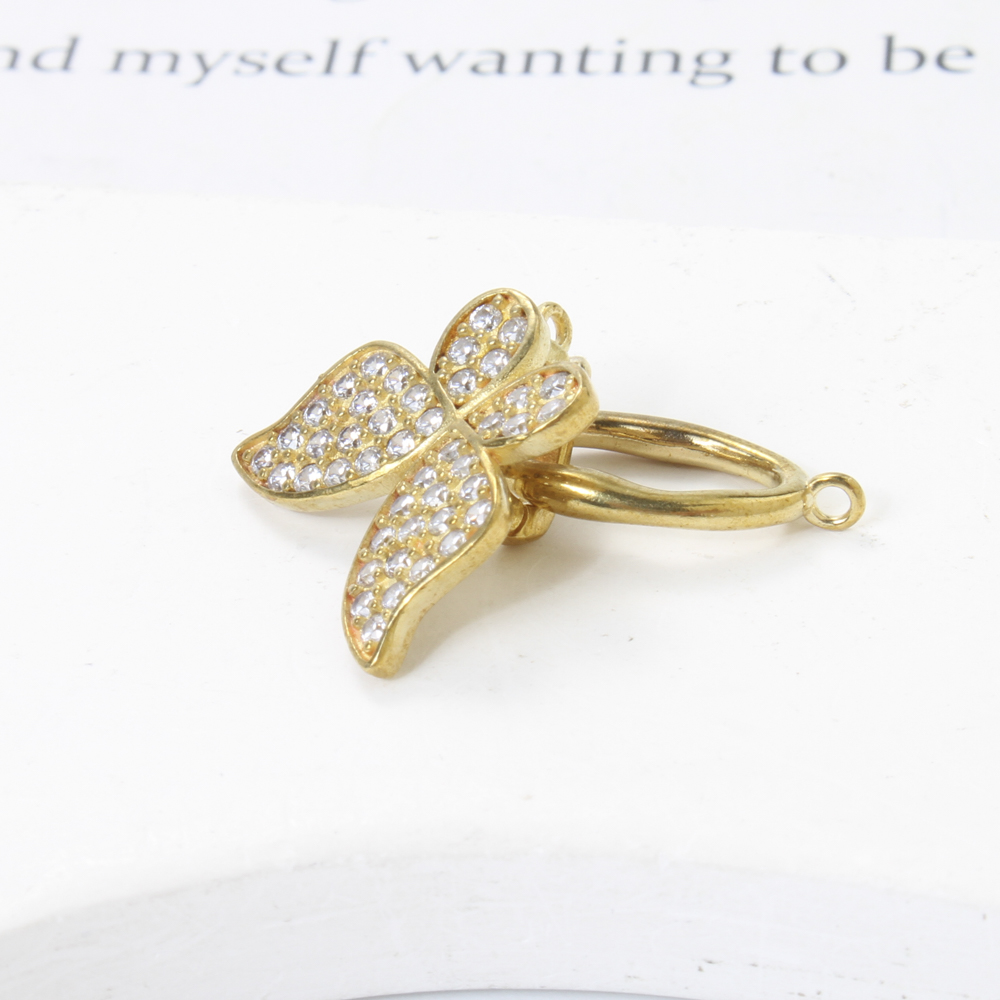 Strass Messing Anhänger, Schleife, plattiert, mit Strass, keine, 13.5x10.5x2mm, Bohrung:ca. 2mm, verkauft von PC