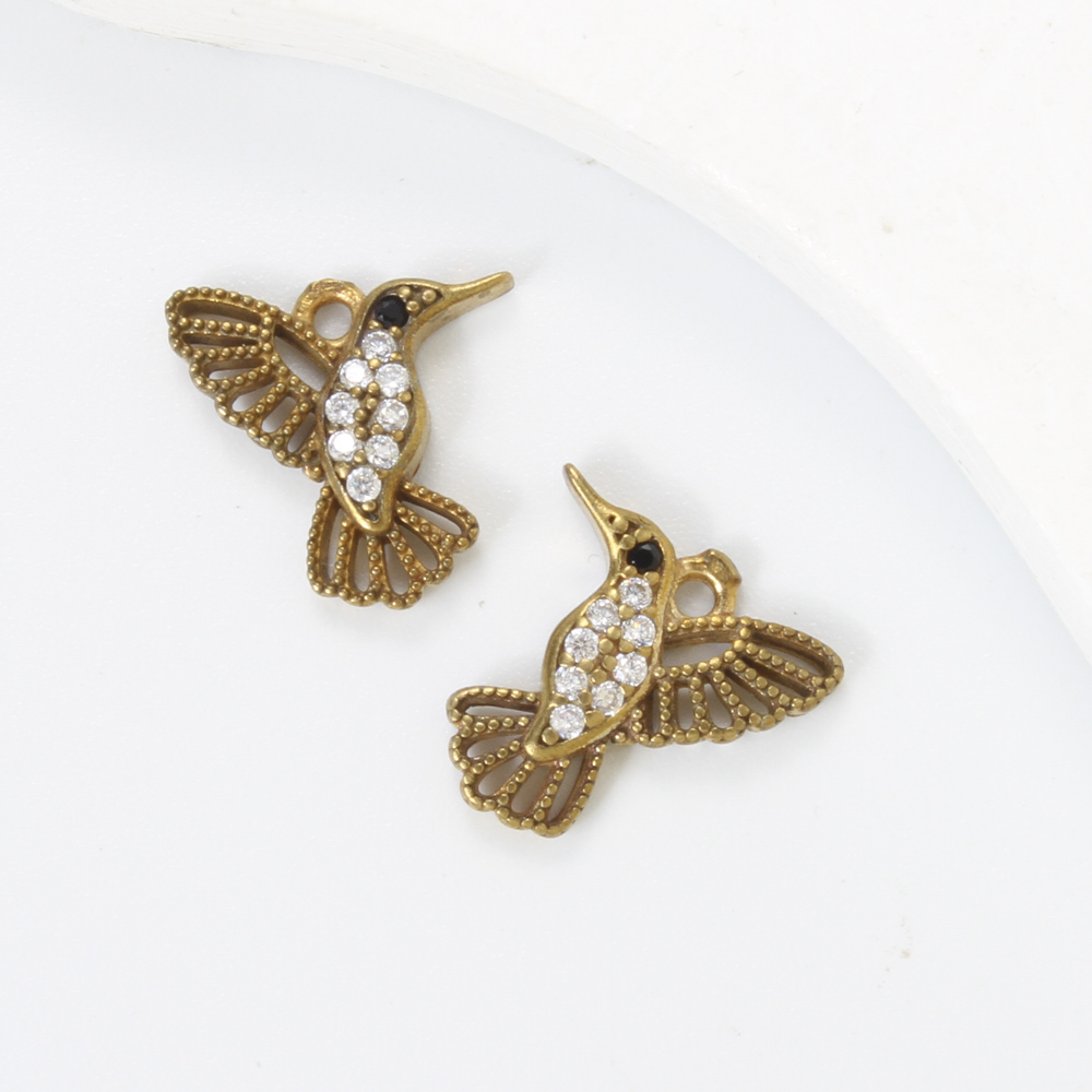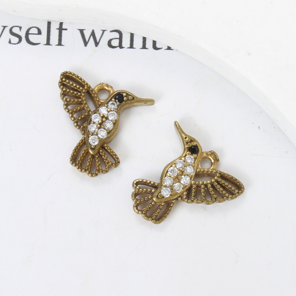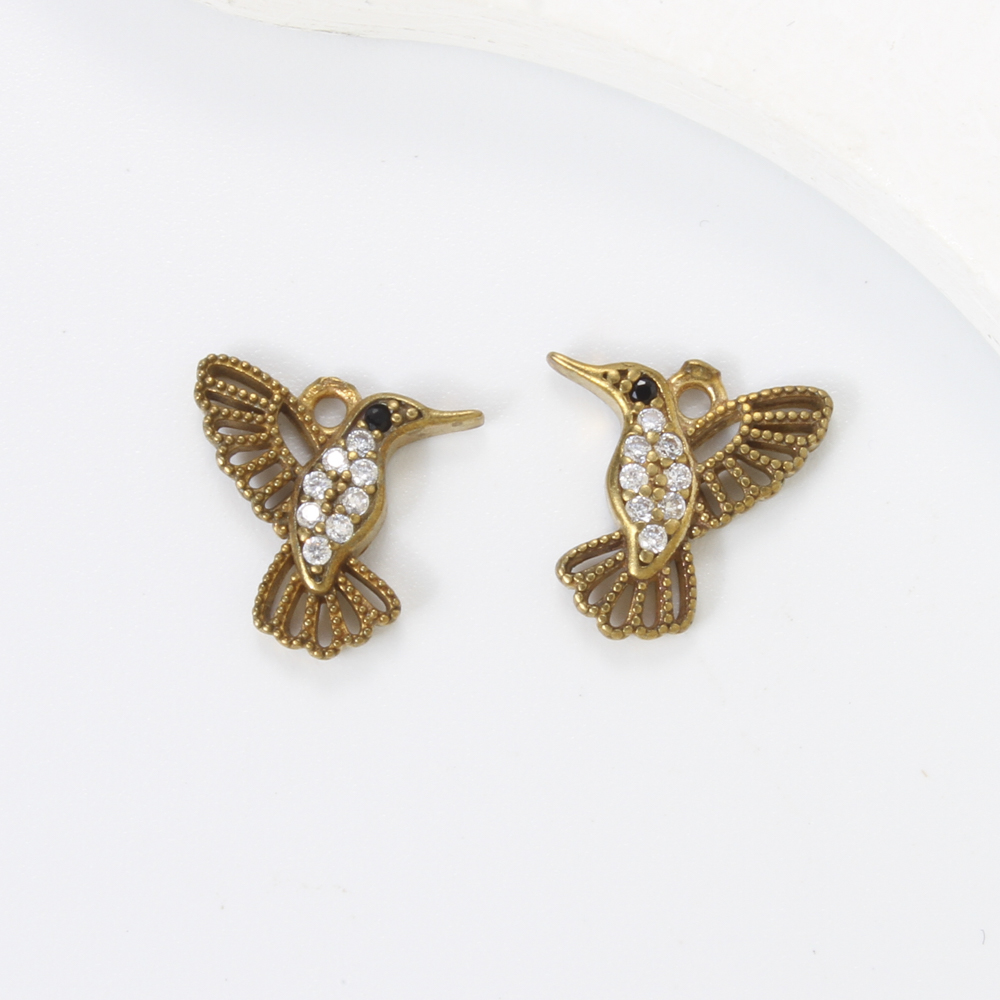 Strass Messing Anhänger, Vogel, plattiert, DIY & mit Strass, goldfarben, 12.6x7x2.3mm, verkauft von PC