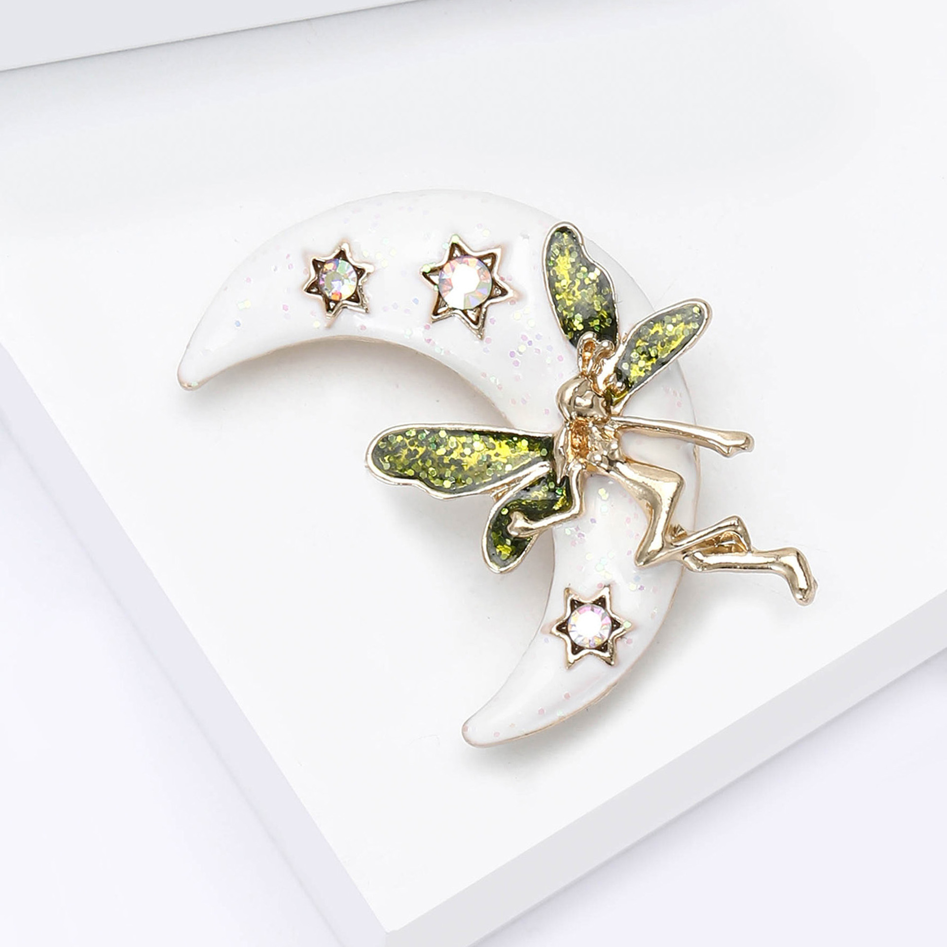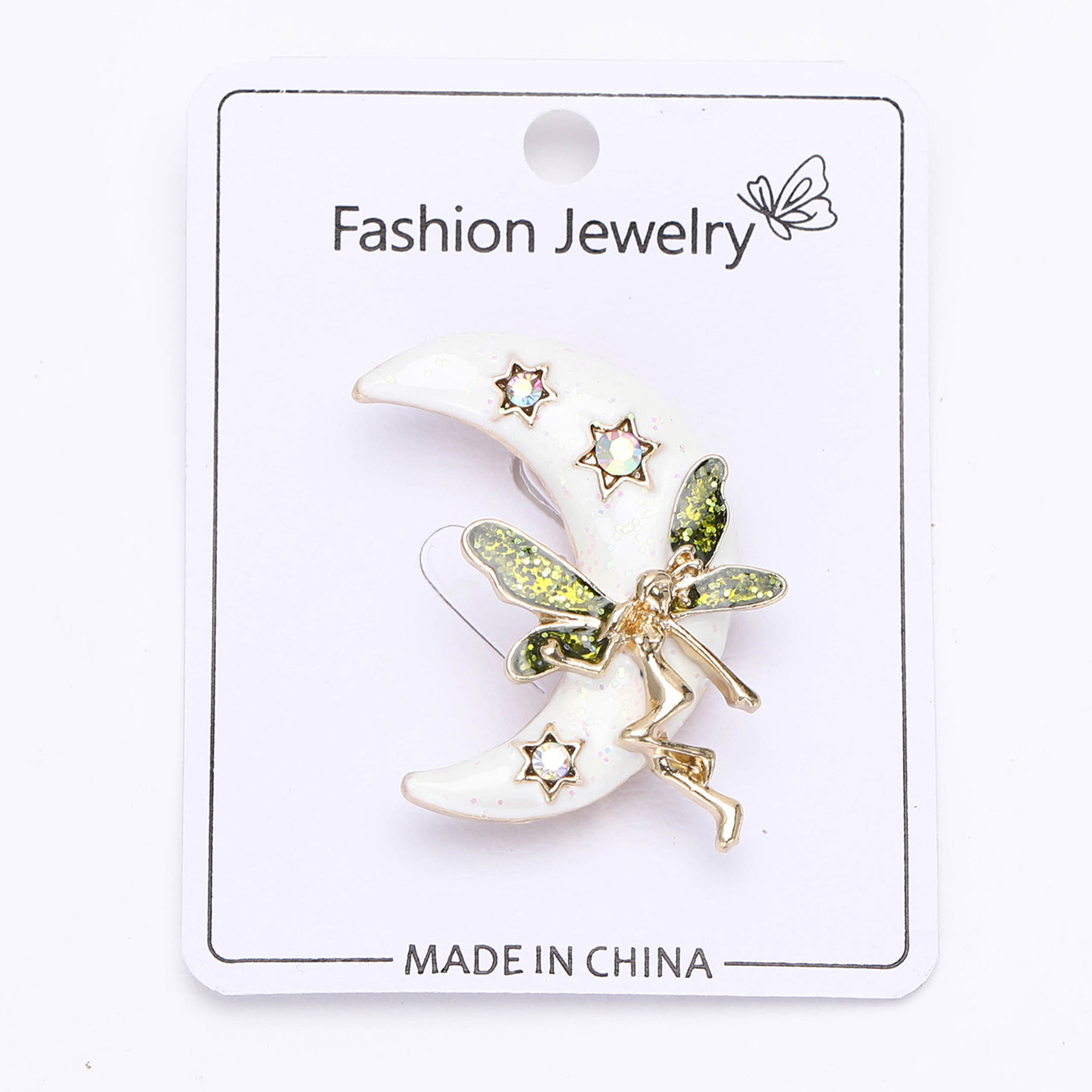 Strass Zink Legierung Brosche, Zinklegierung, Mond, plattiert, Modeschmuck & Emaille & mit Strass, gemischte Farben, verkauft von PC
