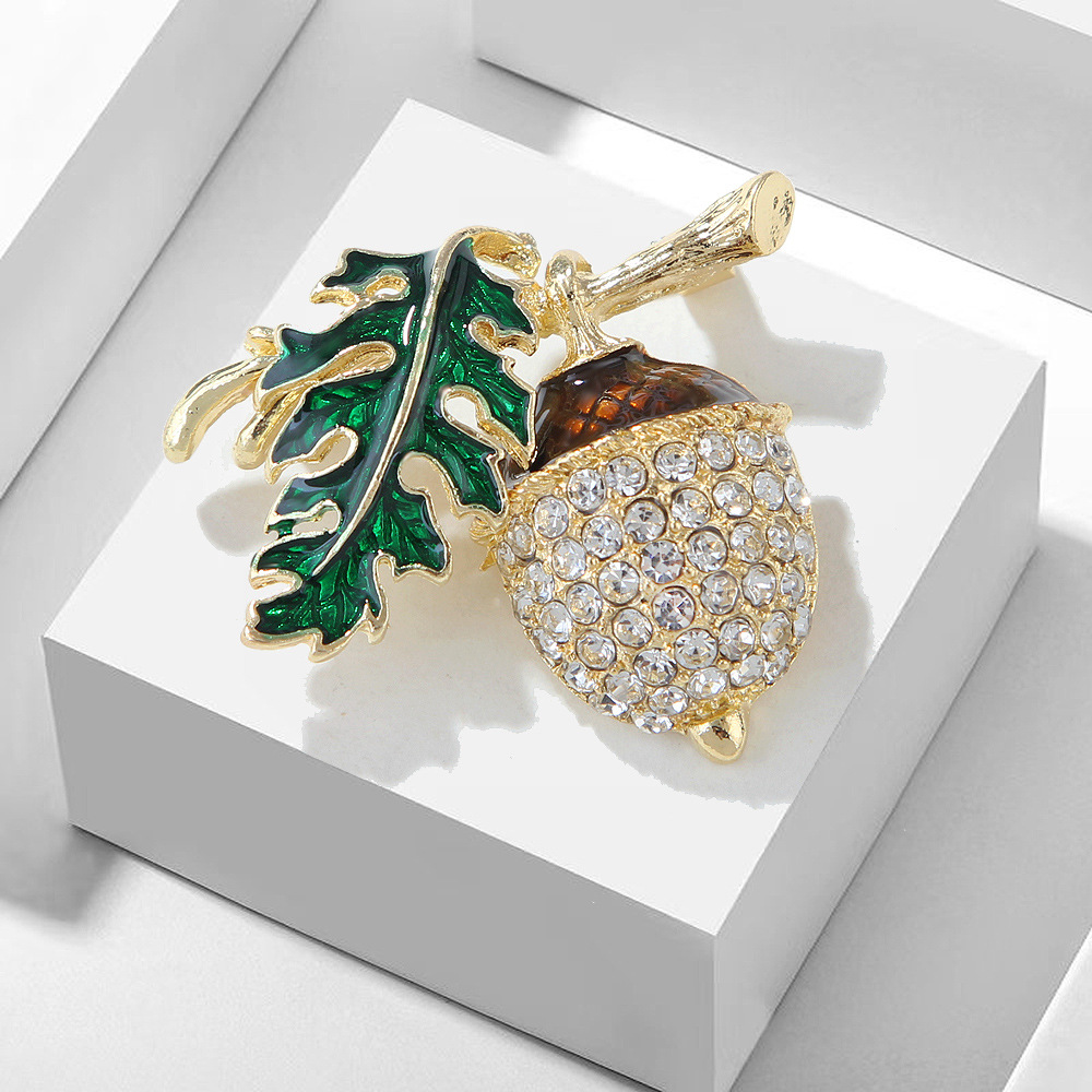 Strass Zink Legierung Brosche, Zinklegierung, Tannenzapfen, goldfarben plattiert, unisex & Emaille & mit Strass, verkauft von PC