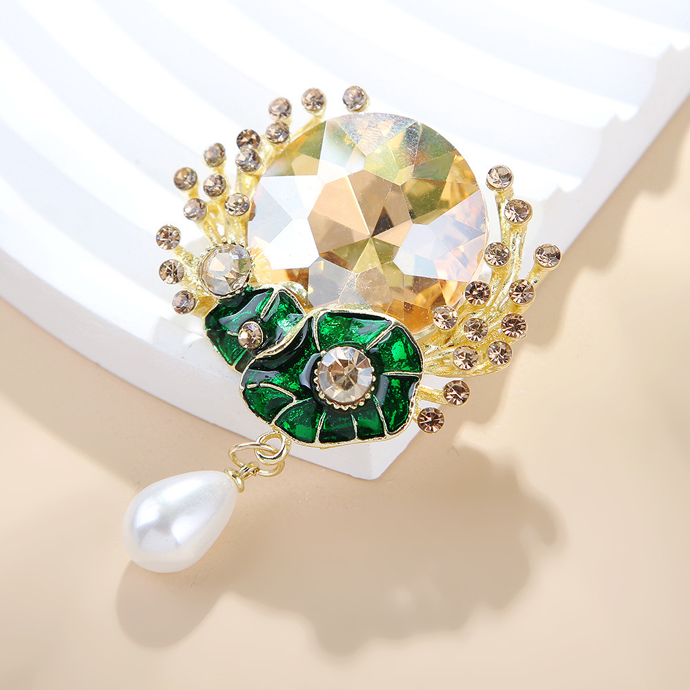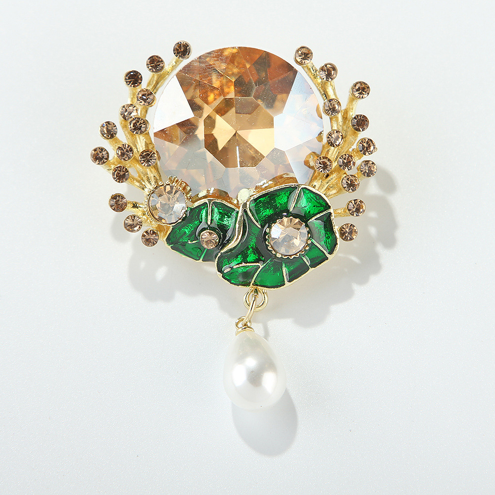Strass Zink Legierung Brosche, Zinklegierung, mit Kunststoff Perlen, plattiert, unisex & Emaille & mit Strass, verkauft von PC