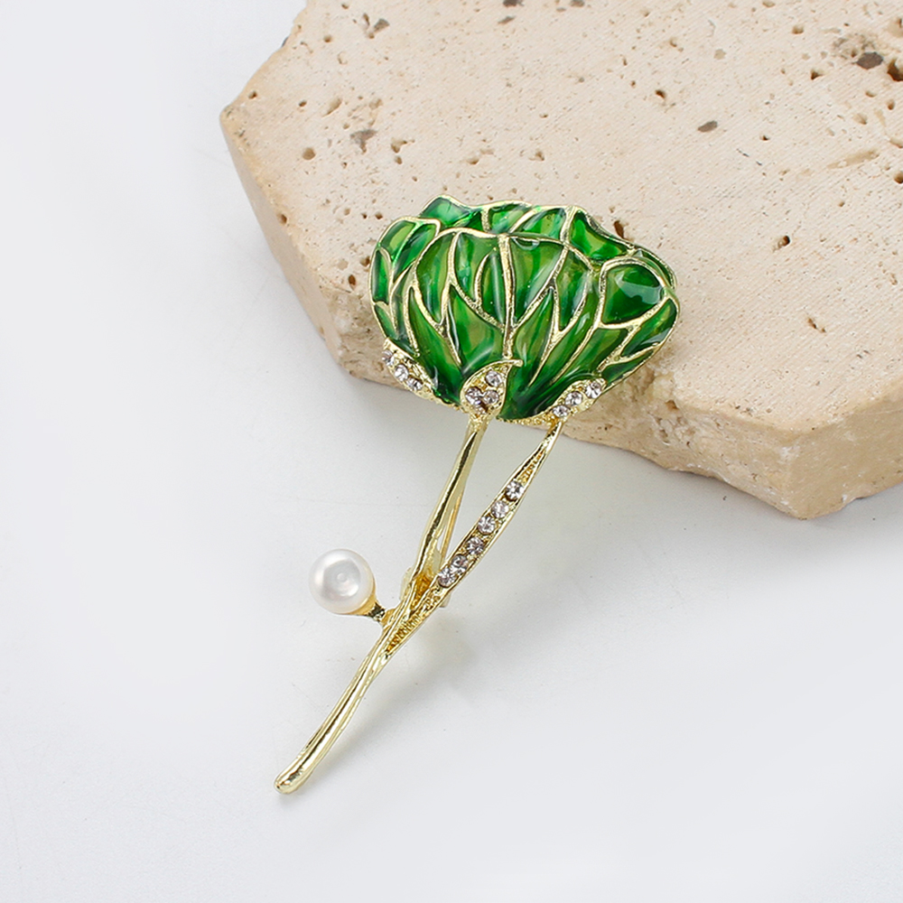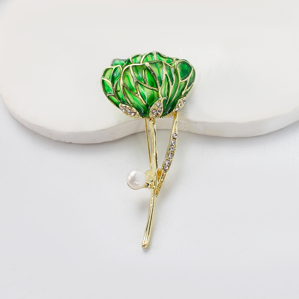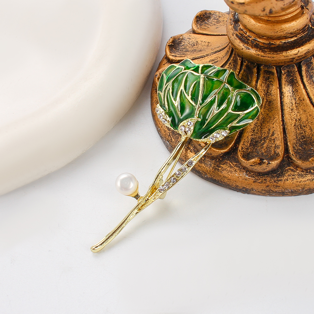 Süßwasserperlen Brosche , Zinklegierung, mit Natürliche kultivierte Süßwasserperlen, goldfarben plattiert, Modeschmuck & Emaille & mit Strass, keine, 32.01x13.18x66.5mm, verkauft von PC