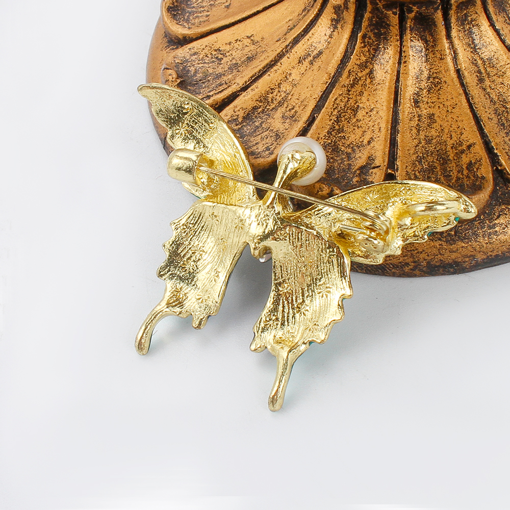 Süßwasserperlen Brosche , Zinklegierung, mit Natürliche kultivierte Süßwasserperlen, goldfarben plattiert, Modeschmuck & Emaille & mit Strass, keine, 49.88x11.73x35.68mm, verkauft von PC