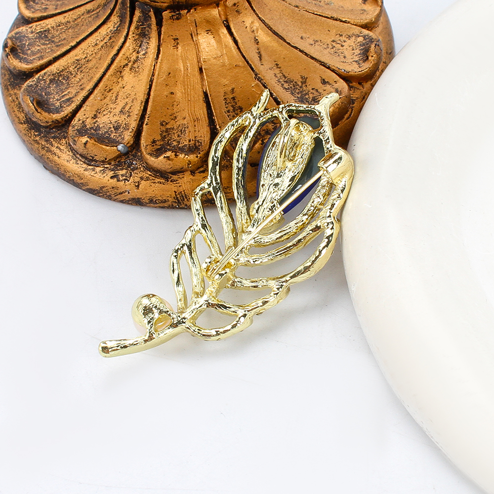 Süßwasserperlen Brosche , Zinklegierung, mit Natürliche kultivierte Süßwasserperlen & Harz, goldfarben plattiert, Modeschmuck & mit Strass, keine, 36.19x11.79x40.93mm, verkauft von PC