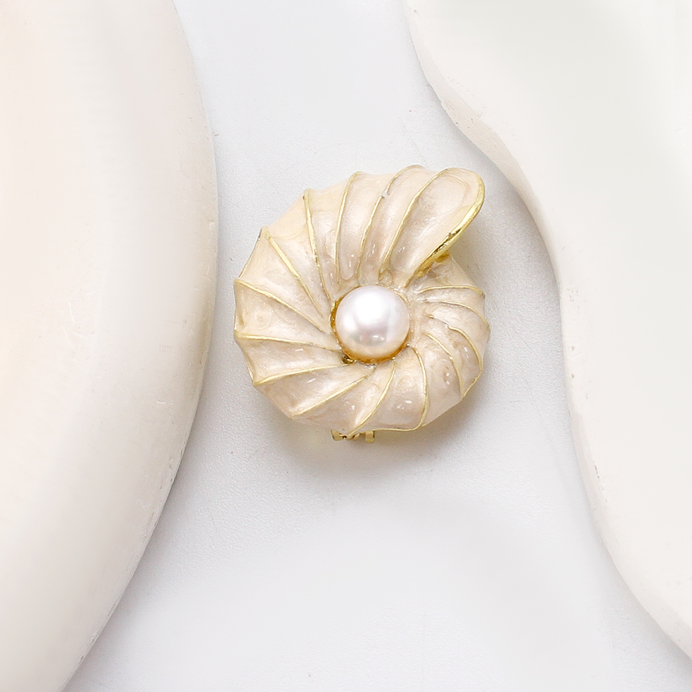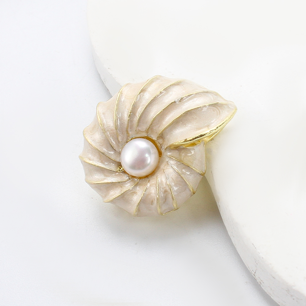 Süßwasserperlen Brosche , Zinklegierung, mit Natürliche kultivierte Süßwasserperlen, goldfarben plattiert, Modeschmuck & Emaille & mit Strass, keine, 24.66x11.59x30.65mm, verkauft von PC
