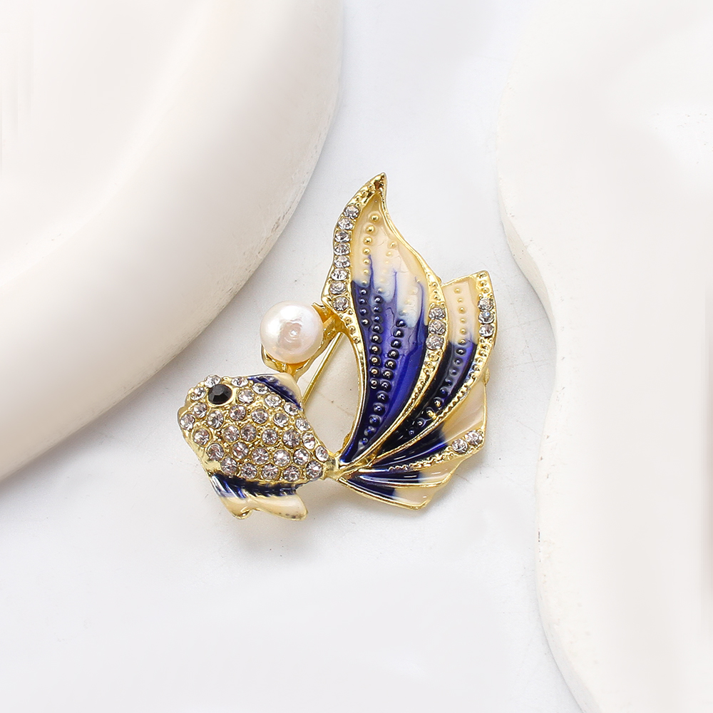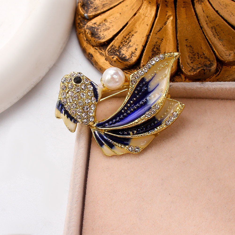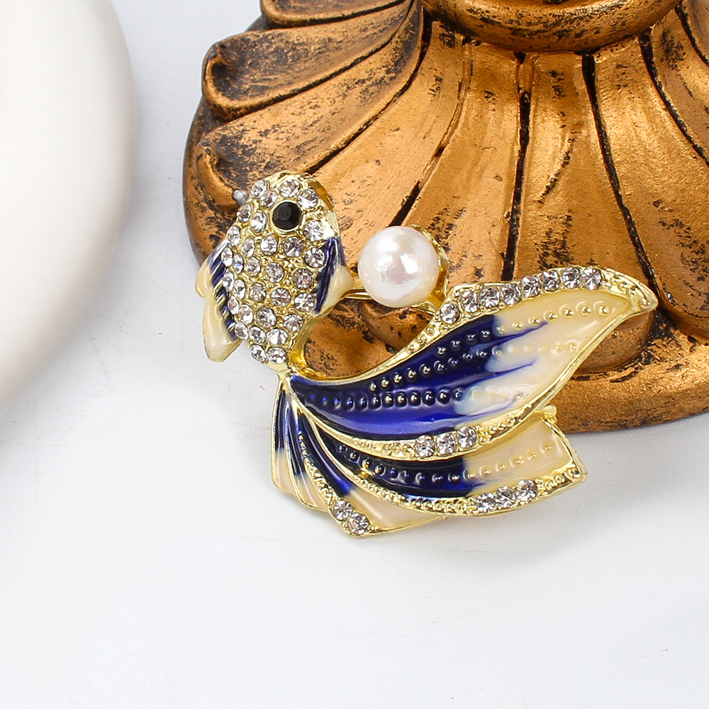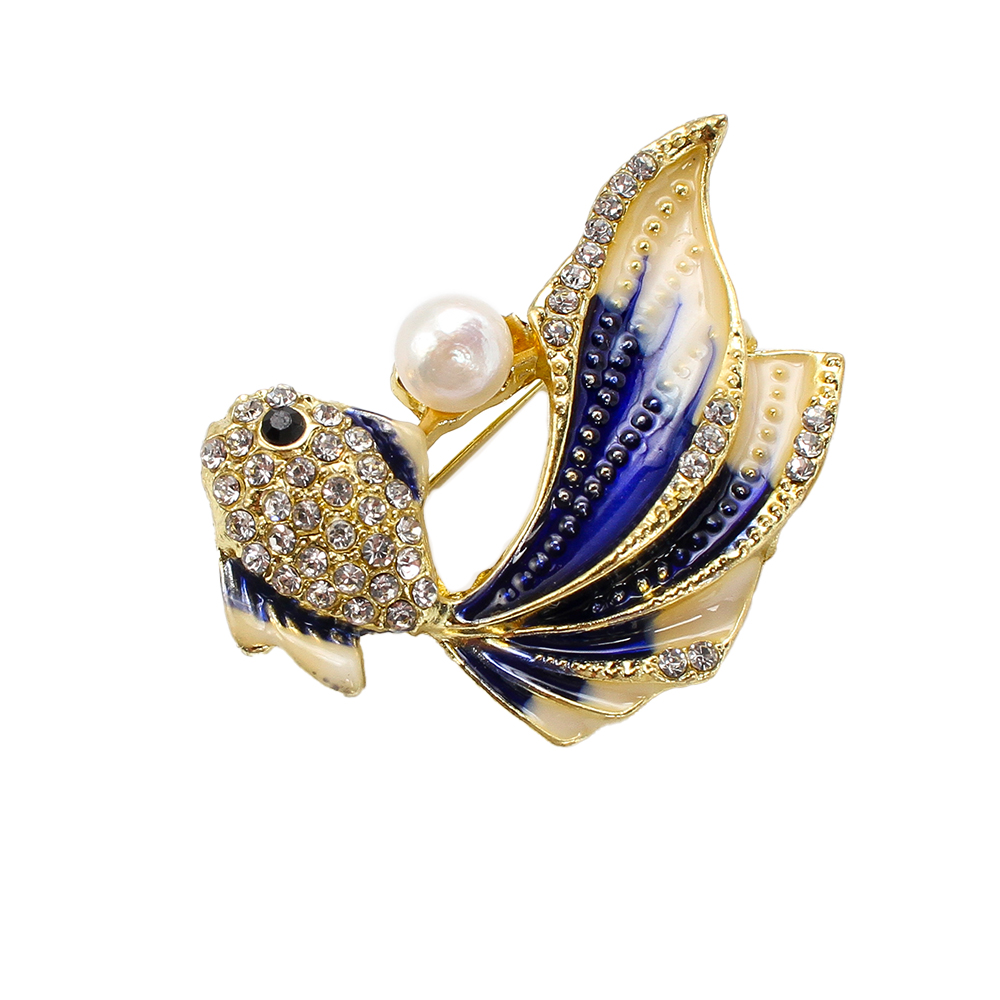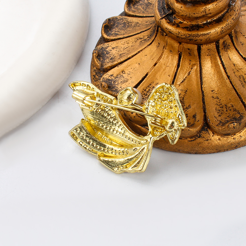 Süßwasserperlen Brosche , Zinklegierung, mit Natürliche kultivierte Süßwasserperlen, goldfarben plattiert, Modeschmuck & Emaille & mit Strass, keine, 44.51x13.19x30.73mm, verkauft von PC