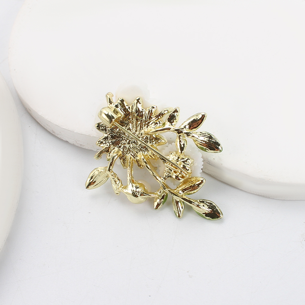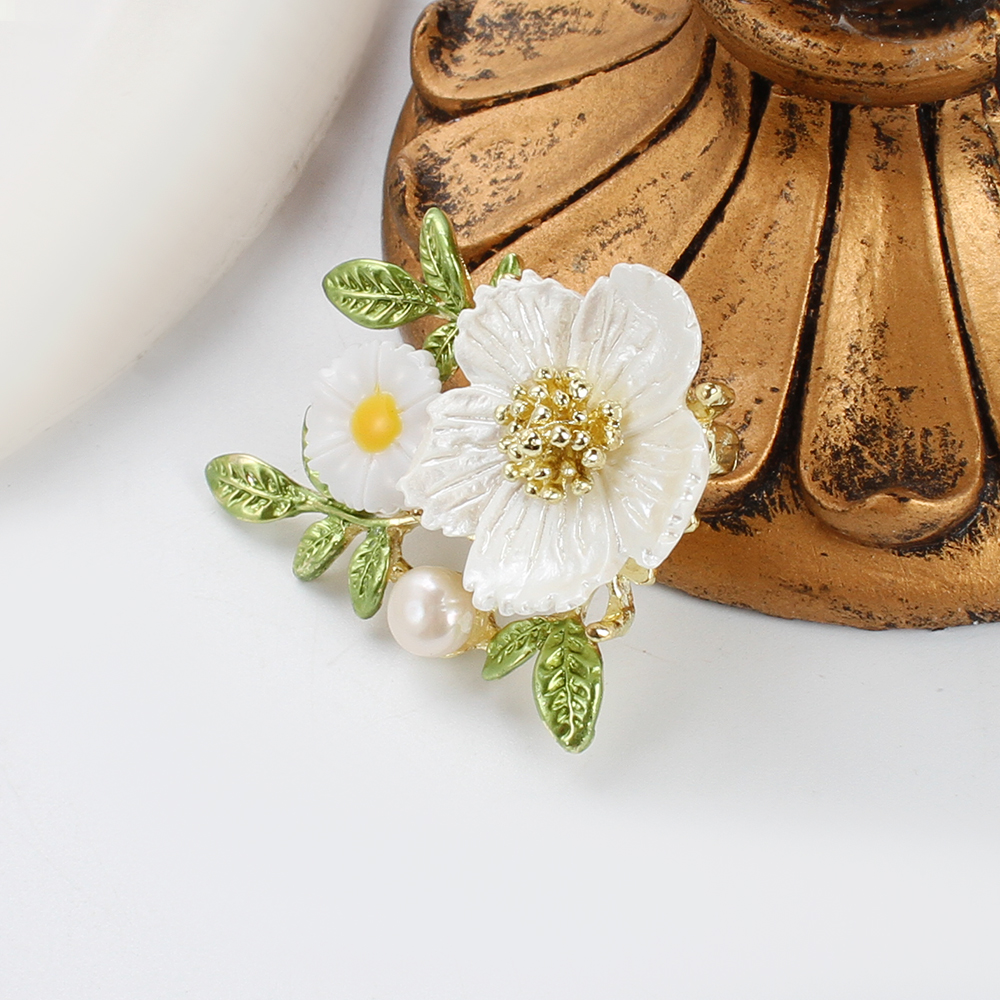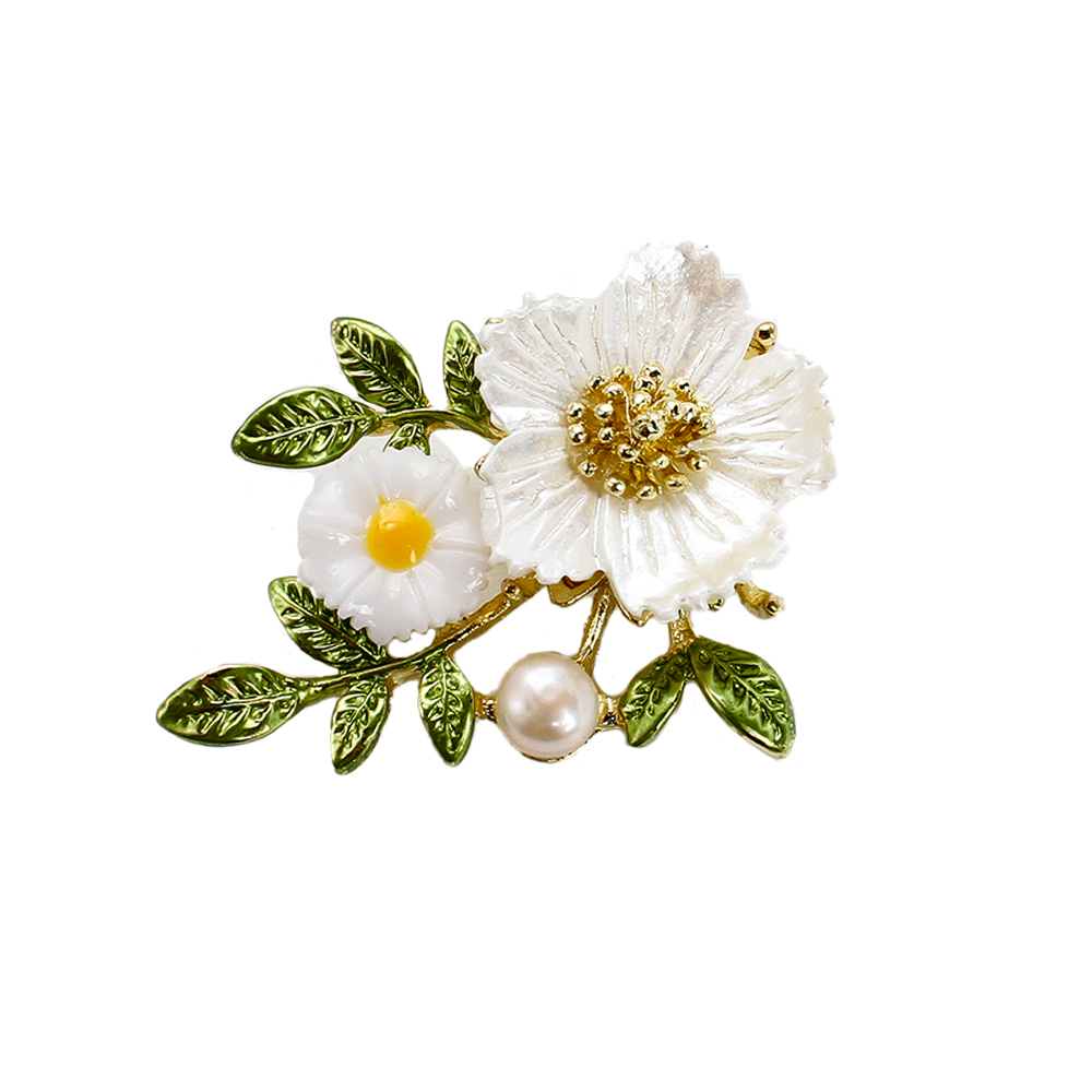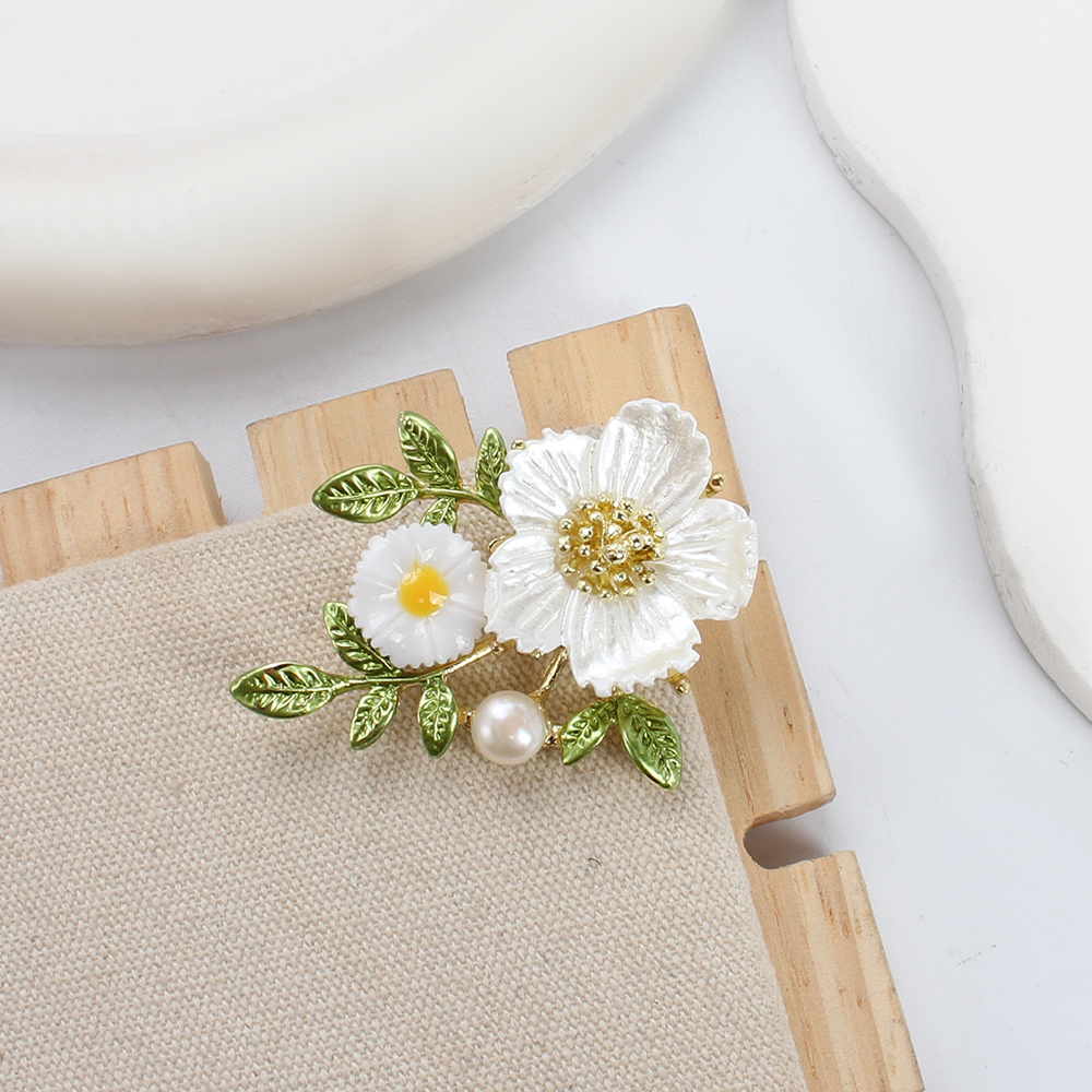 Süßwasserperlen Brosche , Zinklegierung, mit Natürliche kultivierte Süßwasserperlen & Harz, Blume, goldfarben plattiert, Modeschmuck & Emaille, keine, 46.93x14.56x32.89mm, verkauft von PC