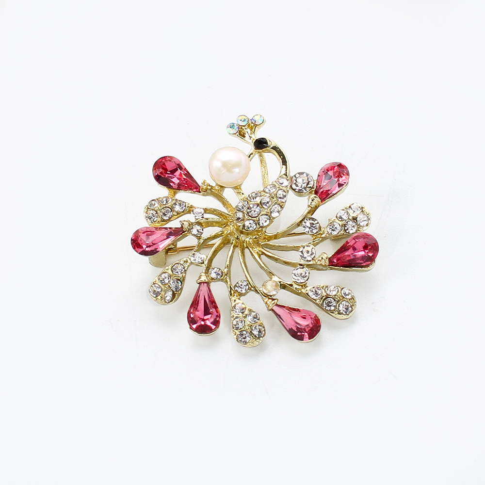 Süßwasserperlen Brosche , Zinklegierung, mit Natürliche kultivierte Süßwasserperlen, Pfau, goldfarben plattiert, Modeschmuck & mit Strass, keine, 43.69x11.57x44.9mm, verkauft von PC