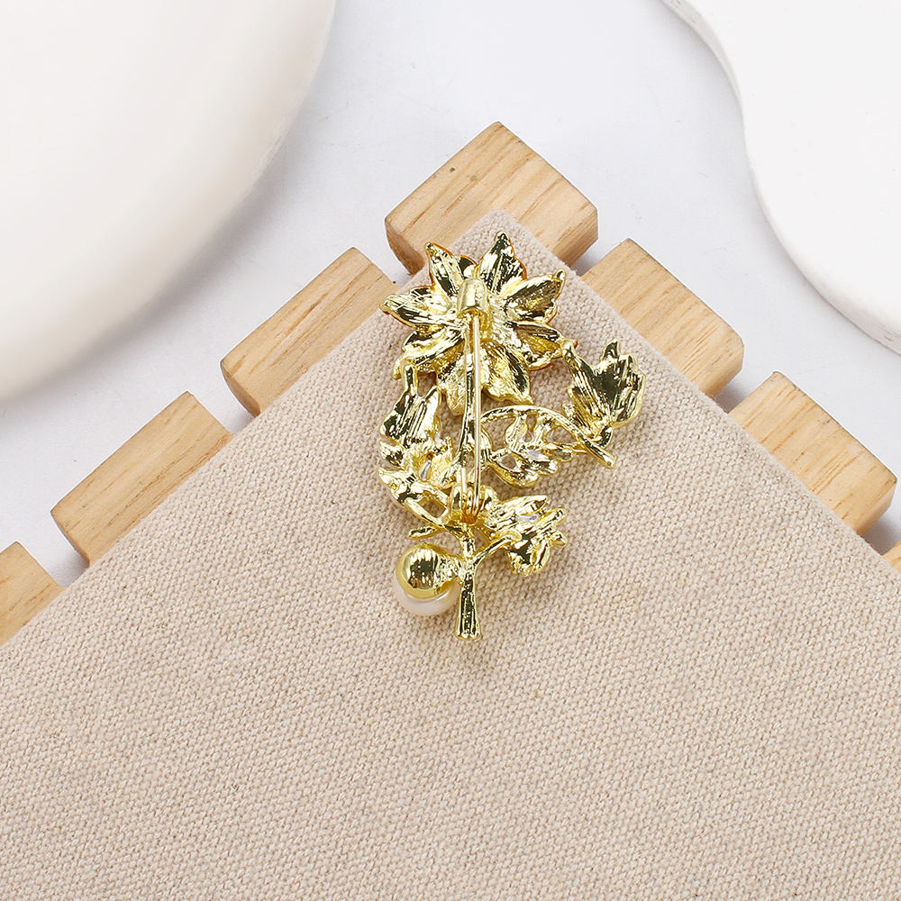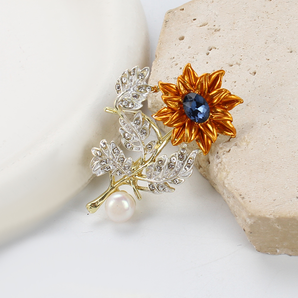 Süßwasserperlen Brosche , Zinklegierung, mit Natürliche kultivierte Süßwasserperlen, Sonnenblume, goldfarben plattiert, Modeschmuck & mit Strass, keine, 31.46x10.87x50.03mm, verkauft von PC