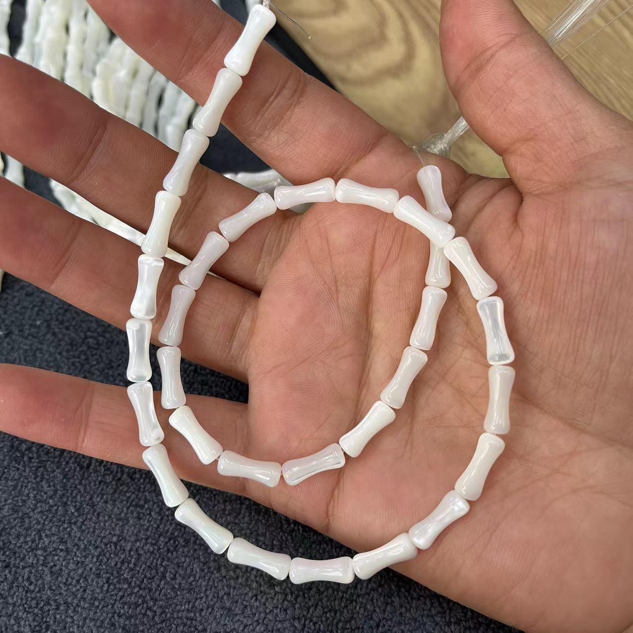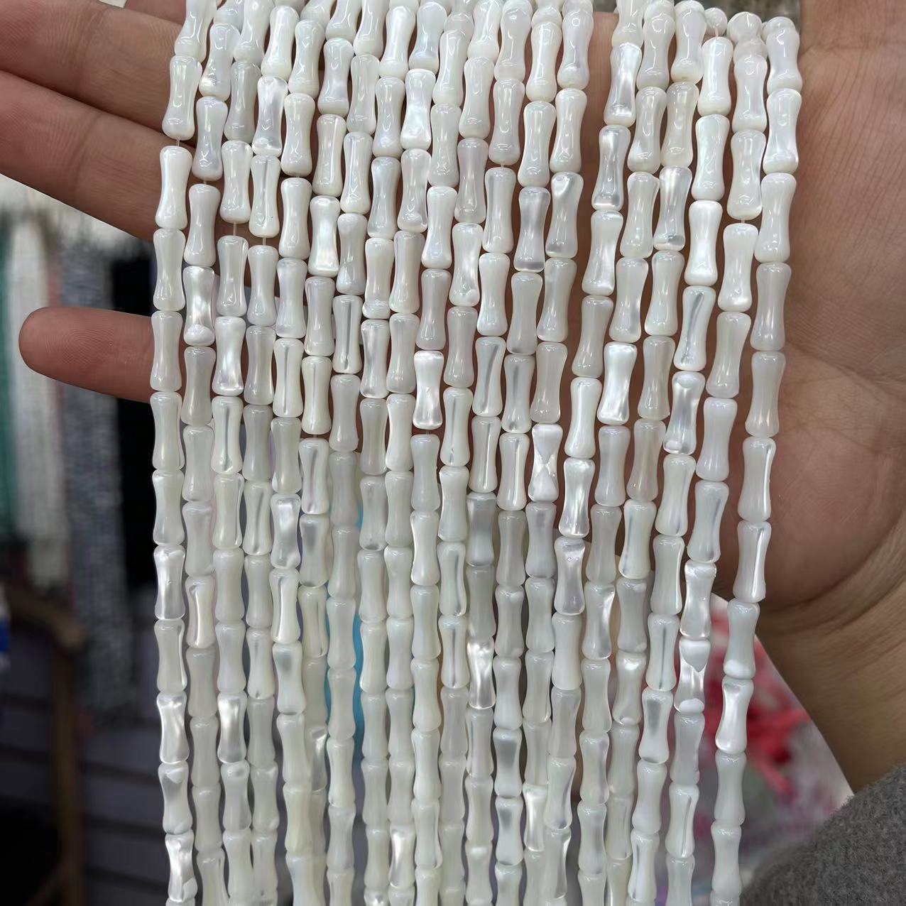 Turbanschnecken Perlen, Bambus, DIY, weiß, 5x12mm, ca. 32PCs/Strang, verkauft von Strang